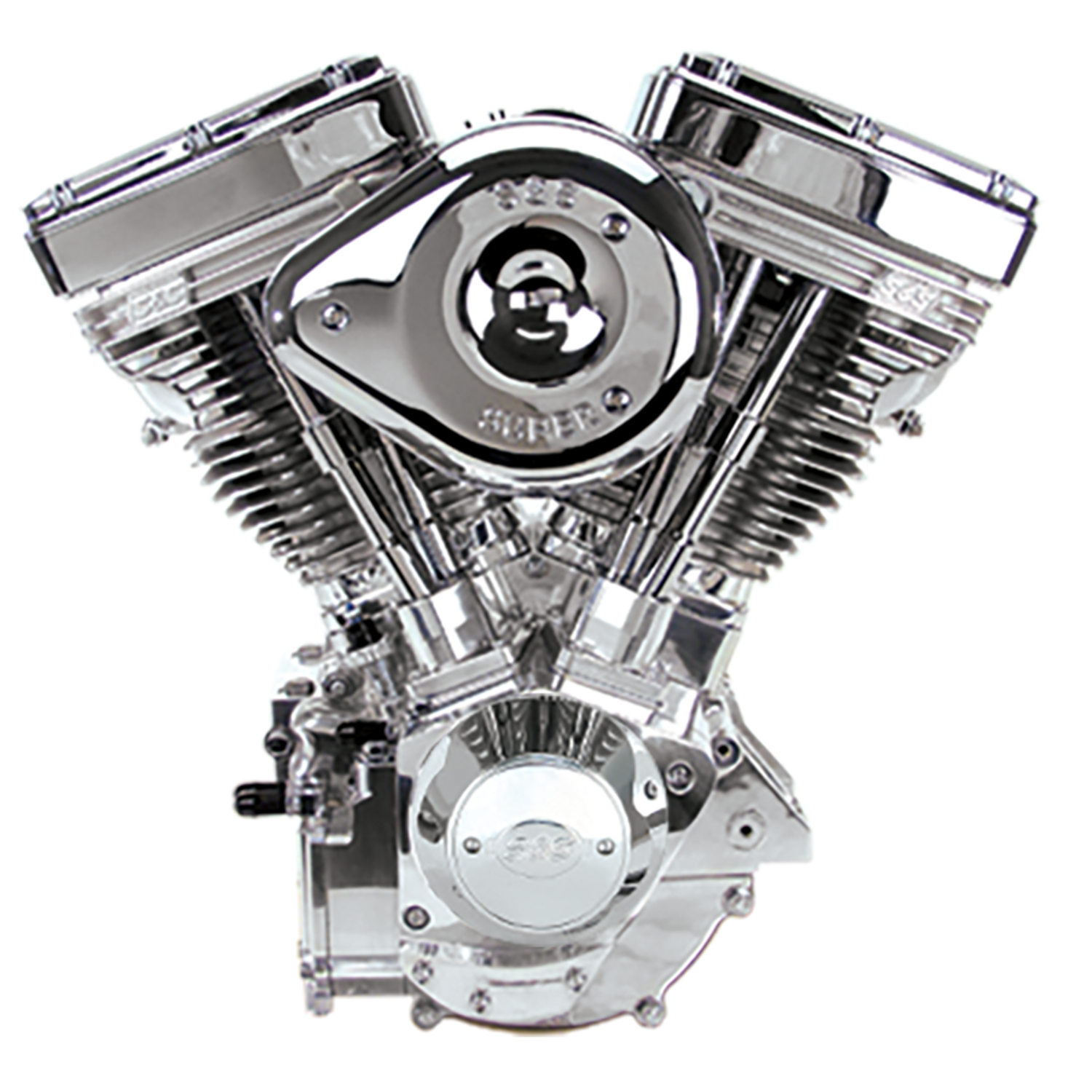 Motore S&S V124, 2035CCAlesaggio 4 1/8″ e corsa 4 5/8″, camme 640, alberi bilanceri a rullinim e decompressori elettrici, Lucidato, Super G Induzione, SuperStock Accensione, garanzia 1 anno