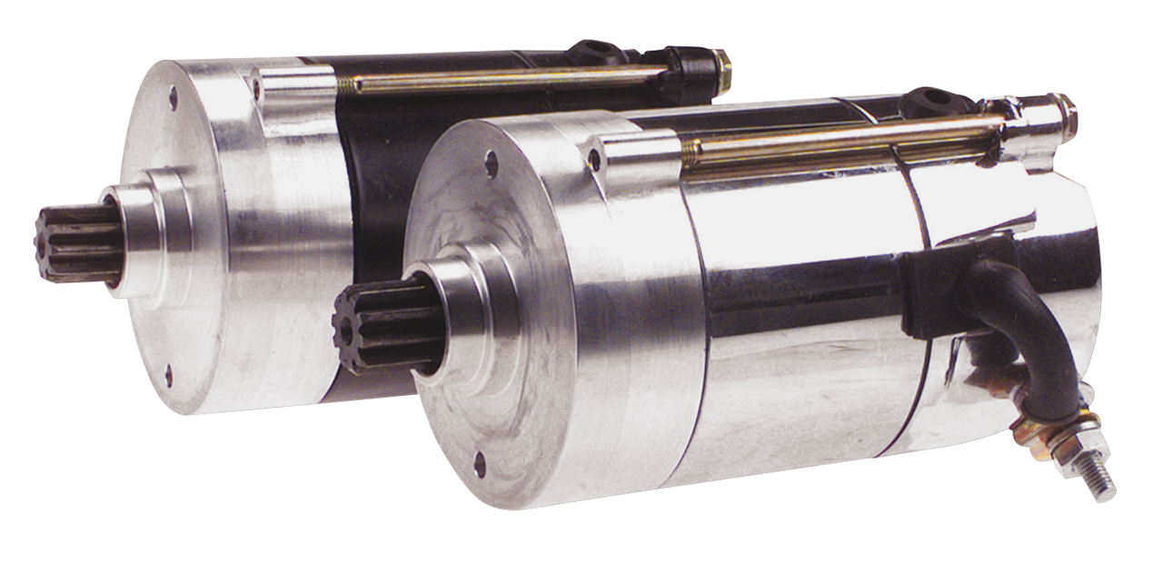 Questi motorini di avviamento All Balls sono più di una riproduzione di quello originale. Si tratta di progetti completamente nuovi che utilizzano una tecnologia all’avanguardia e sono addirittura un po’ più corti dell’originale Hitachi. La parte motrice è in alluminio lavorato a CNC con le dimensioni esatte necessarie per sostituire un motorino di avviamento Prestolite o Hitachi. Questo lato di azionamento in alluminio billet si inserisce perfettamente nell’alloggiamento primario, garantendo un accoppiamento così solido da rendere superflue le fragili staffe montate sul lato destro dell’avviatore OEM. Realizzati in Canada con parti nuove, offrono una potenza di avviamento di 1,4 kW. Si noti che non è possibile utilizzare un tipo di avviamento per sostituire l’altro. Un motorino d’avviamento Hitachi originale ha un diametro di 80mm, un alloggiamento lungo 145mm e due bulloni passanti #10-24 UNF. Un motorino d’avviamento originale Prestolite ha un diametro di 70mm, un alloggiamento lungo 173mm e due bulloni passanti 1/4-20 UNC.