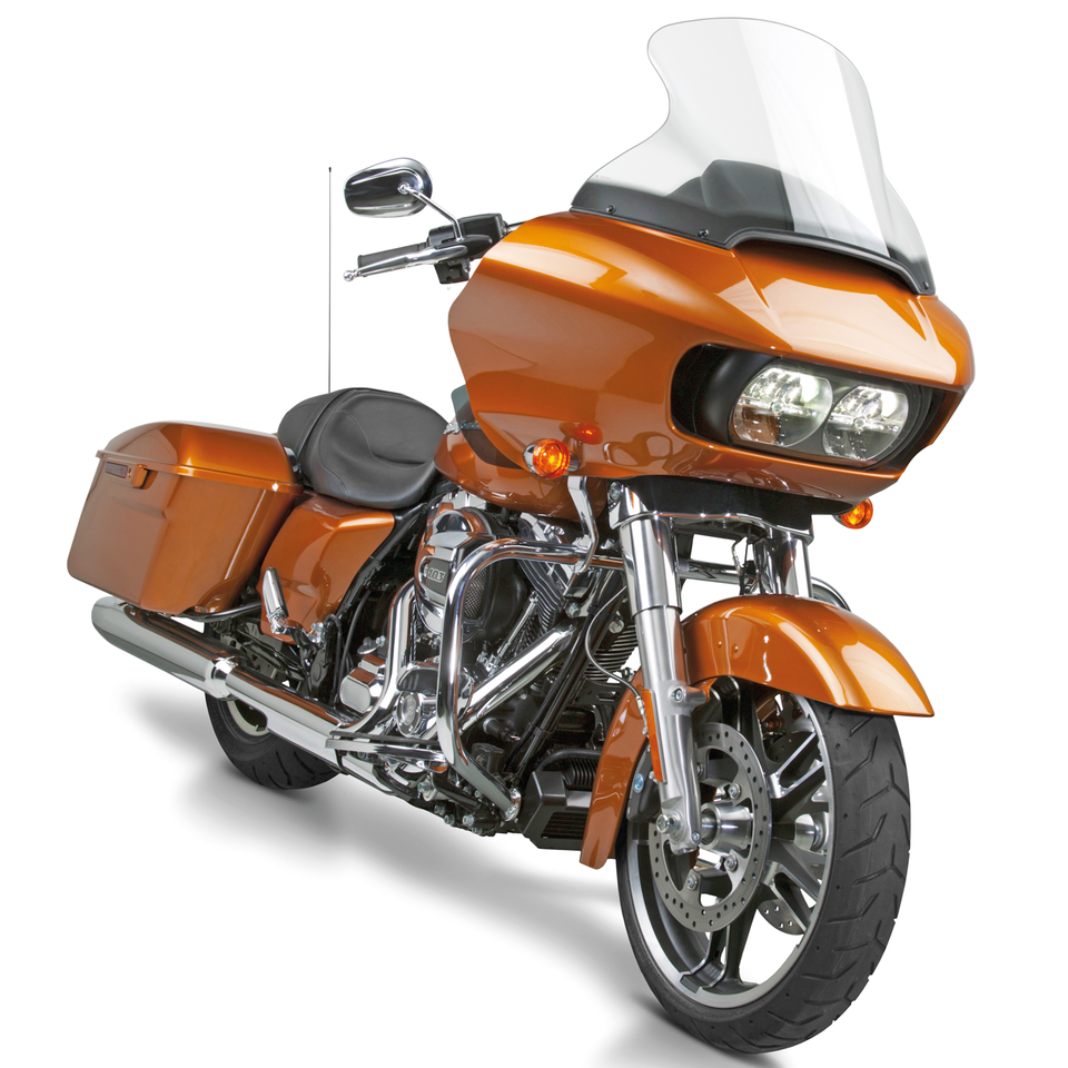 Per montaggio sul telaio del cupolone originale di FLTR Road Glide, FLTRU Road Glide Ultra, FLTRX Road Glide Custom, FLTRXS Road Glide Special 2015-2024 e FLTRK Road Glide Limited 2021 a oggi, Standard, 16″ (40.6cm), trasparente