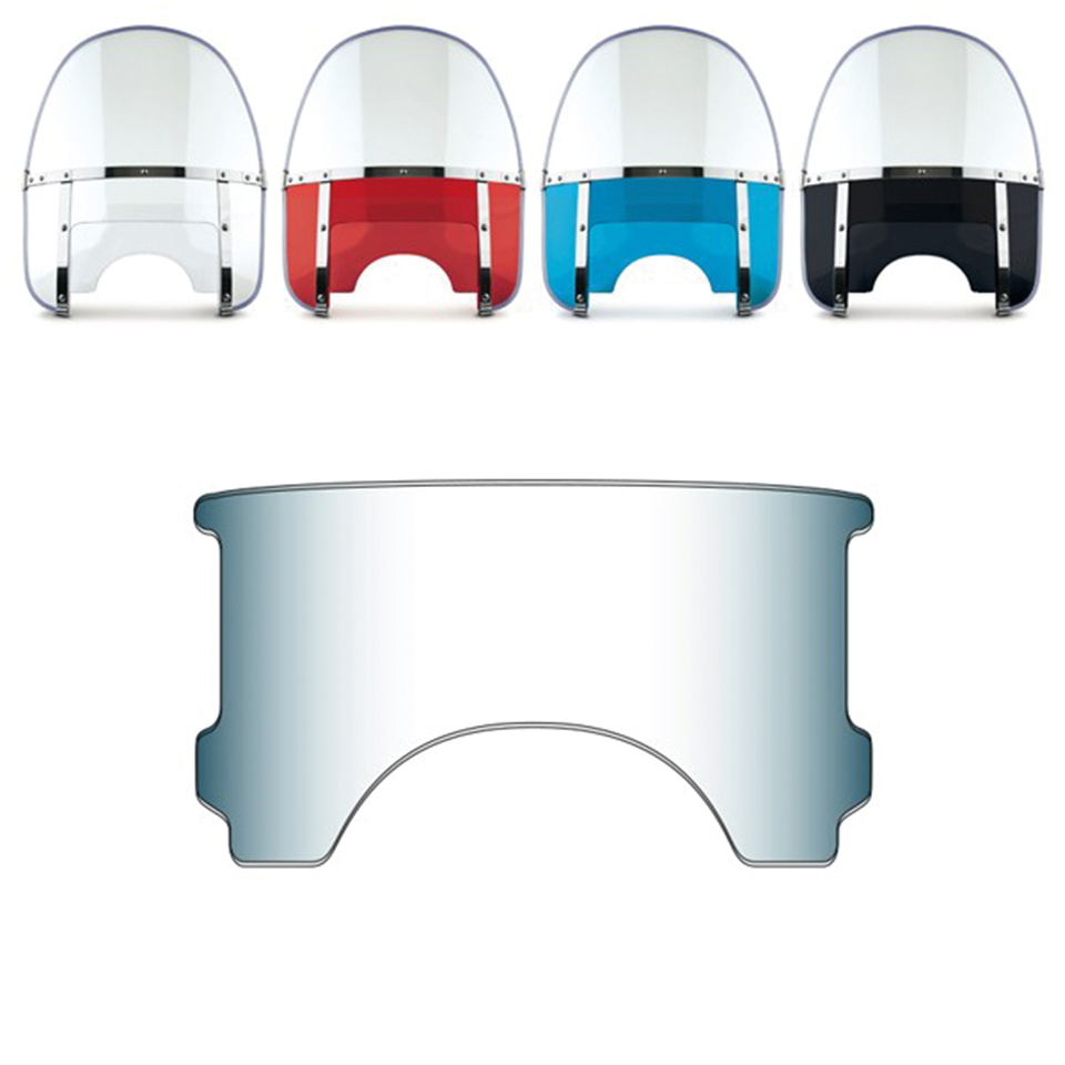 Il parabrezza Chopped rinforzato ha uno schermo largo, ma un profilo basso, che è la scelta preferita di molti piloti fornendo un’eccellente protezione per petto e spalle. E’costruito in robusto Lexan policarbonato con l’esclusivo rivestimento Quantum ed ha il telaio in acciao inox cromato e lucidato e le staffe interne in acciaio verniciate nere a polvere. Misura 21.5″ (54.6cm) di larghezza e d è aggiustabile in altezza da 14.3″-15.8″ (36-40cm), misurato dalla sommità del taglio del fanale fino alla sommità del parabrezza. La finestra centrale inferiore è anch’essa regolabile, in modo da avere alla fine il parabrezza personalizzato come si desidera. I kit parabrezza completi, sono forniti di tutto il necessario per il montaggio. Per chi vuole aggiungere un tocco personale abbiamo delle finestre regolabili in vari colori. Se invece avete necessità di avere spazio per riporre degli oggetti, abbiamo una borsa da parabrezza disponibile come accessorio.