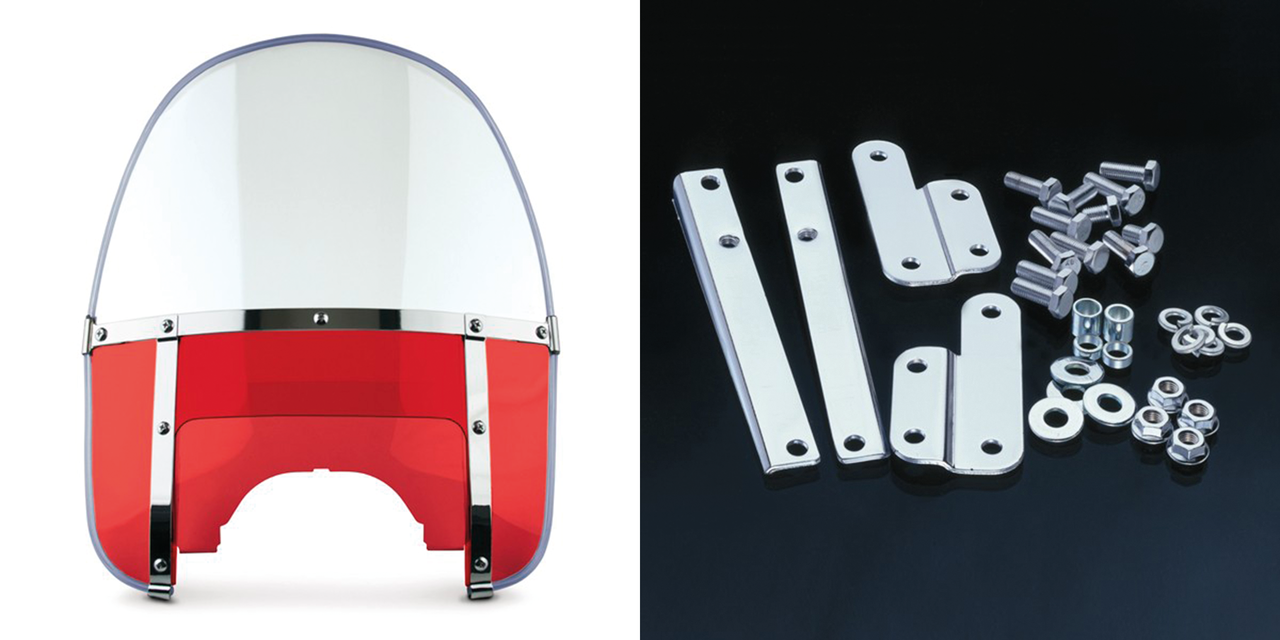 Per forcelle da 41mm su FL Hydra Glide e Duo Glide 1949-1959, Kit parabrezza completo con parte superiore tonda stile 1960-1984, trasparente con parte inferiore rossa
