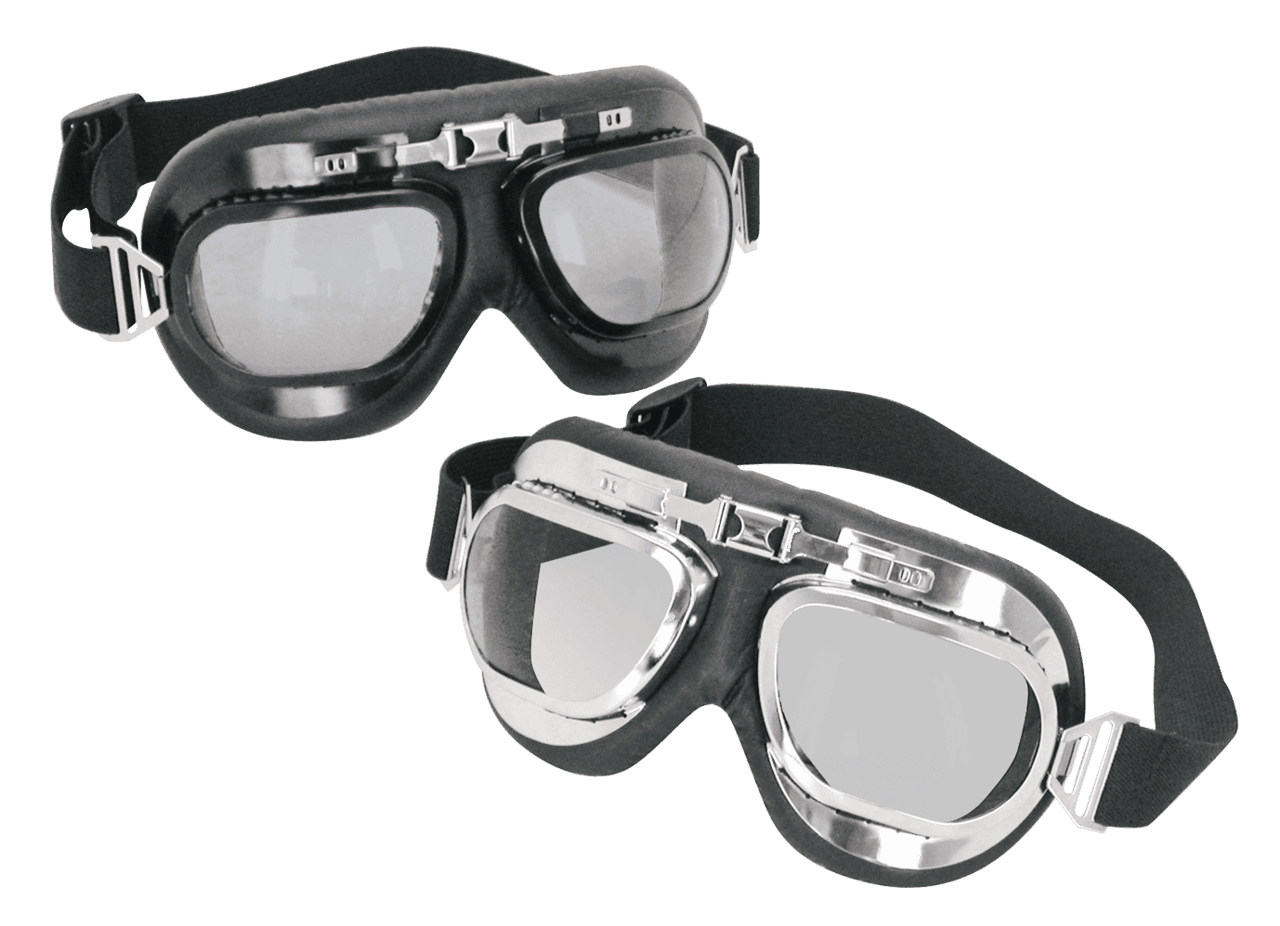 Questi occhiali classici sono disponibili a scelta con telaio cromato o nero. Le lenti infrangibili in policarbonato hanno la protezione contro i raggi UVA. La fascia posteriore è completamente regolabile.