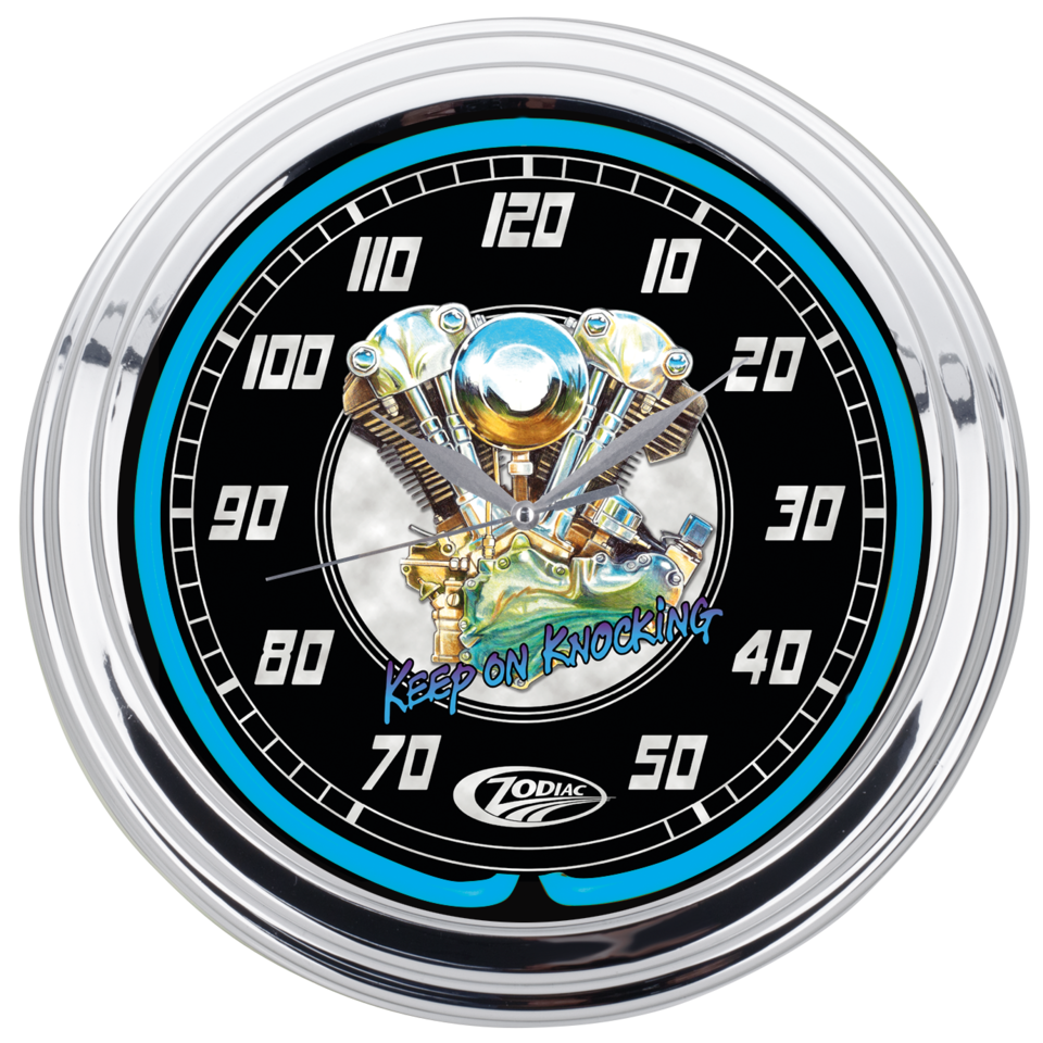 Questi orologi da parete da 38cm (15″) sono dotati di un orologio piezoelettrico a batteria e di un’illuminazione della circonferenza in stile neon per il quadrante da 30cm (11 3/4″) con il motore della vostra Harley preferita. Viene fornito completo di alimentatore per la luce al neon. L’orologio funziona con una batteria standard di tipo AA (nota anche come IEC60086 tipo R6 o ANSO C18 tipo 15) ampiamente disponibile nei negozi di bricolage, supermercati e farmacie.