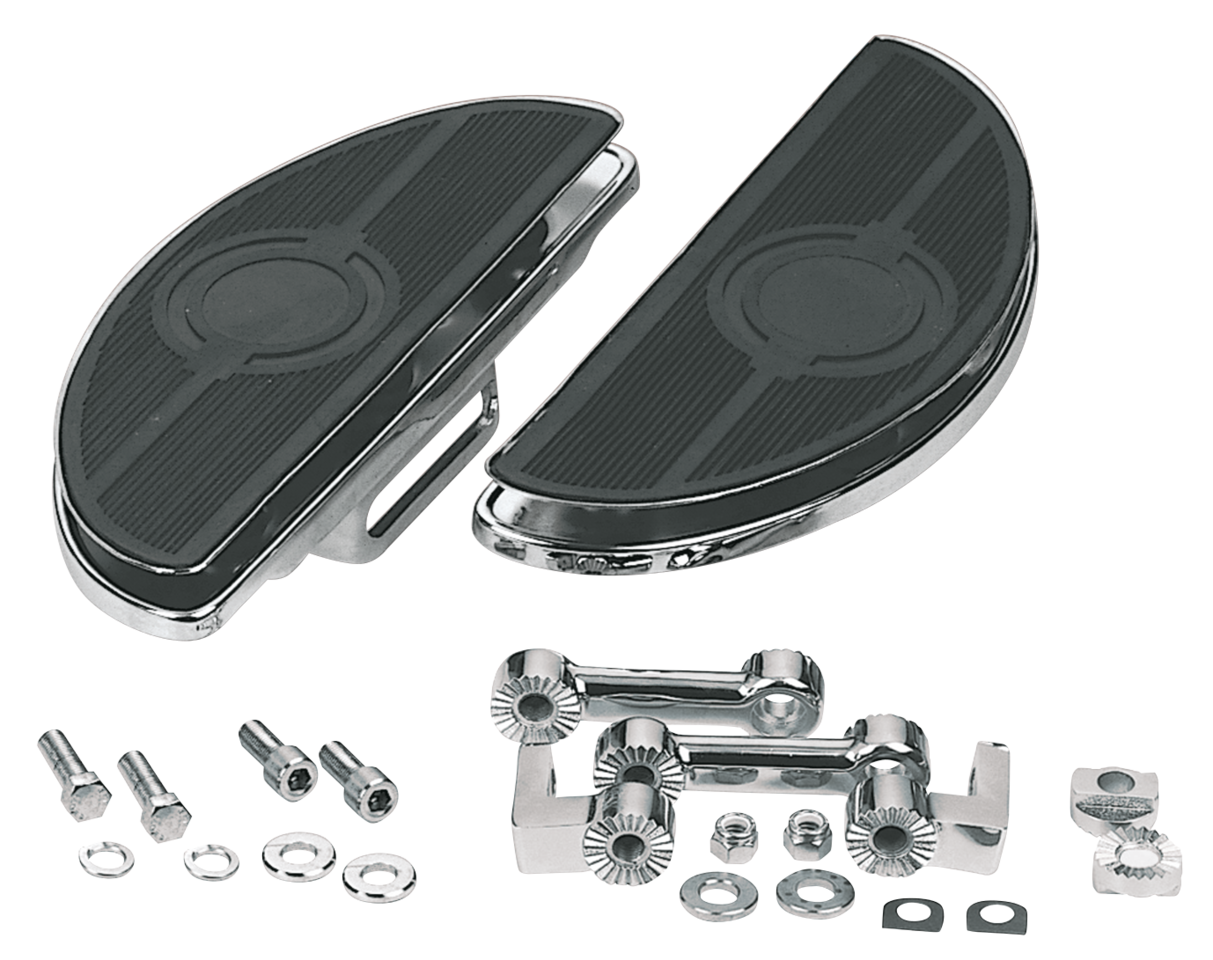 Un design innovativo dotato della versatilità che manca ad altre pedane. I supporti forgiati e cromati permettono una traslazione orizzontale di 7″ ed una regolabilità anche in altezza. L’utilizzo di ammortizzatori in gomma assicura una guida confortevole senza vibrazioni. Per FXWG 4 Marce dal 1980 al 1986, tutti i Softail dal 1984 al 2017 (eccetto Heritage e Fat Boy) e Dyna Wide Glide 1990. Possono comunque essere montate su tutti i modelli recenti con attacchi femmina.