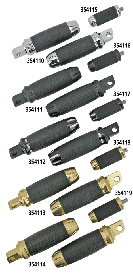 Pedane poggiapiedi e pedalini freno e cambio in alluminio billet con inserti in gomma antiscivolo. I poggiapiedi hanno l’attacco maschio e sono venduti in coppia. I pedalini freno e cambio sono venduti singolarmente. Disponibili cromate, bronzo, nero con tagli a contrasto, bronzo Stealth e nero Stealth. La finitura Stealth è una combinazione di colore opaco e lucido.