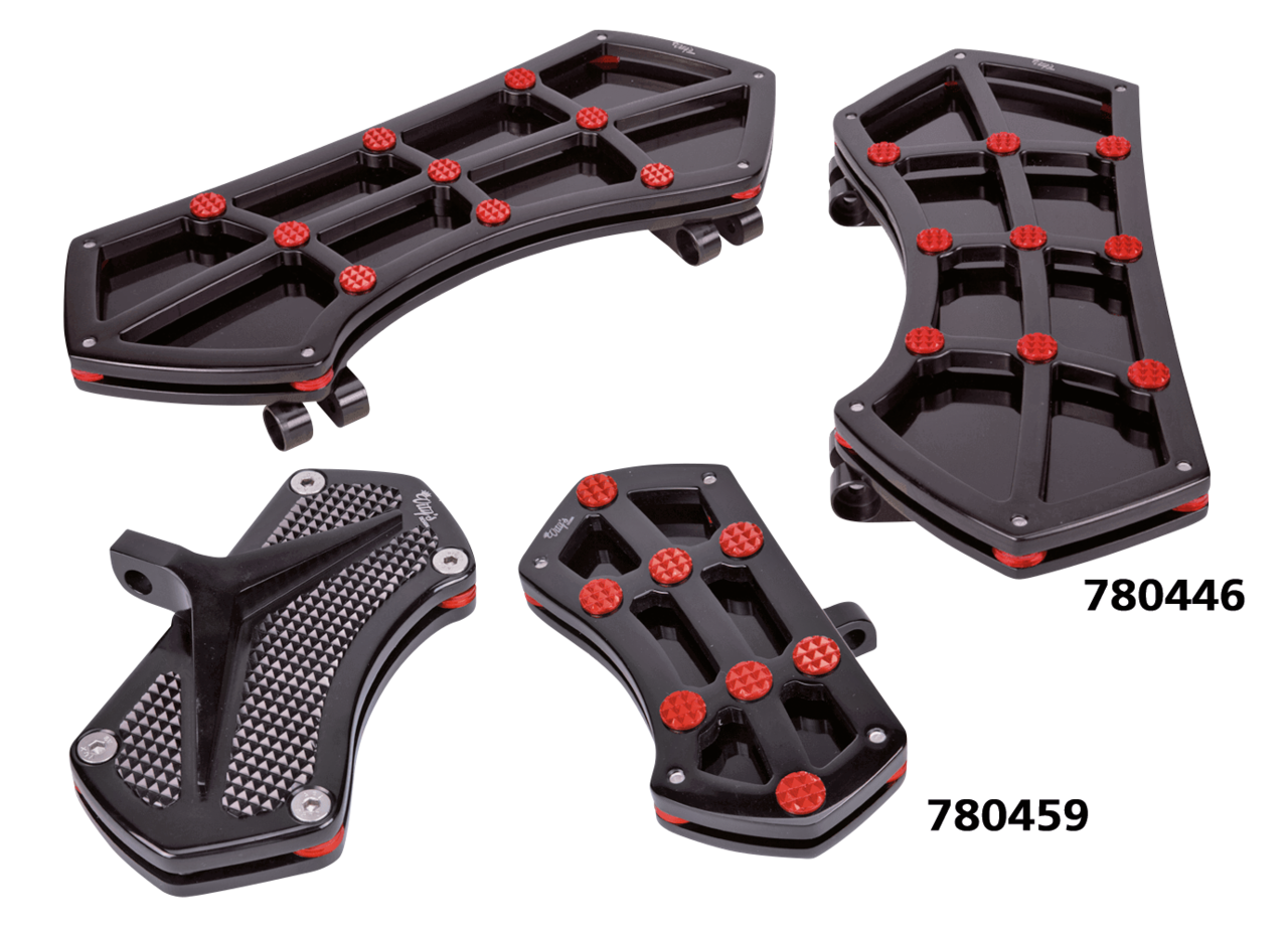 Pedane guidatore per FLD Switchback 2012-2016, Softail FL 1986-2017, Touring dal 1980 a oggi (escluso FLHTCUL & FLHTKL) e Trike dal 2009 a oggi, Nere con gemme Diamond rosse
