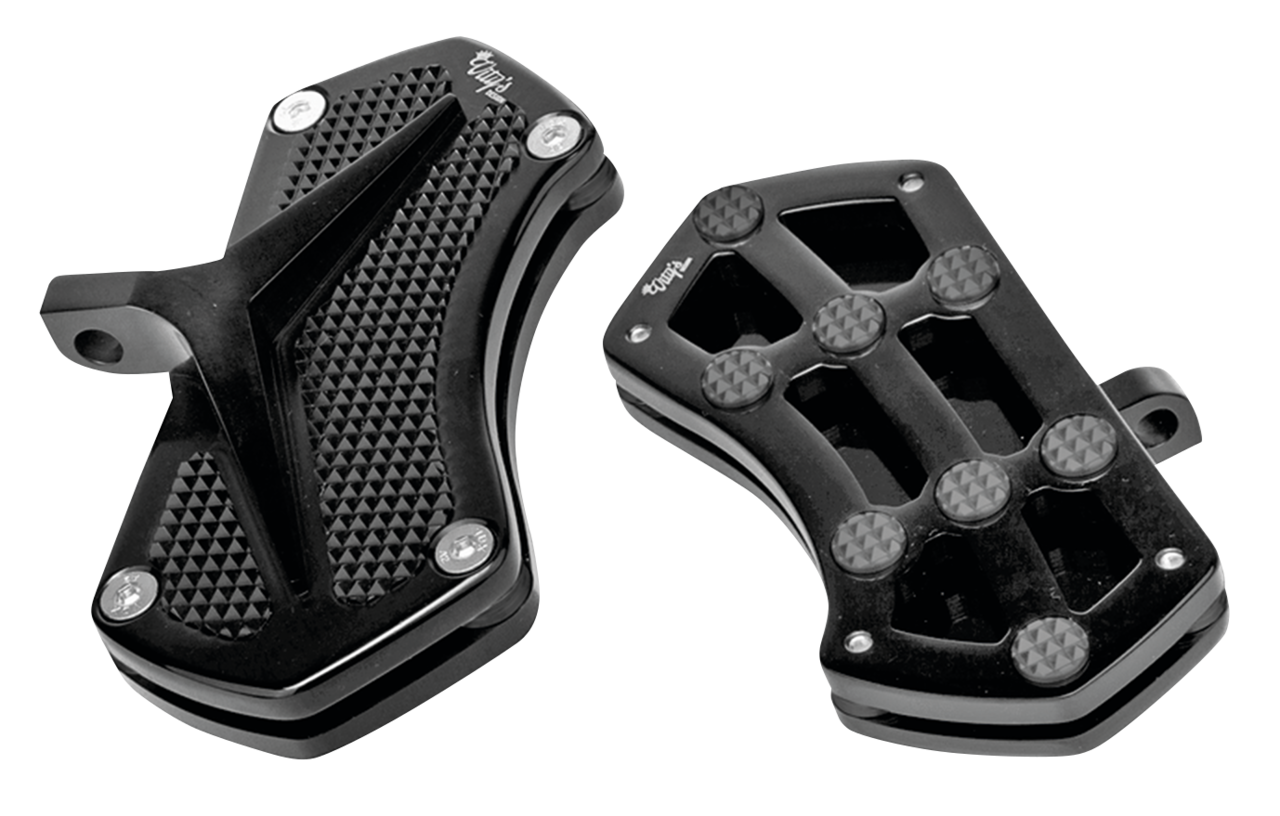 Alluminio billet. Pedane guidatore sono lunghe 13,8″ e larghe 5″. Includono 18 inserti stile Diamond per la massima aderenza. Le pedane guidatore si montano sugli attacchi di serie. Pedane passeggero si adattano alle staffe di serie Street Glide e in altri modelli con supporti femmina pieghevoli verticali. Per tutti Touring ad eccezione Street Glide, è necessario ordinare separatamente i supporti delle pedane passeggero Vity. Venduti in coppia. Vity’s Design è italiana per quel motivo offre i colori rosso e verde dalla bandiera e il blu dalle divise sportive della Nazionale come colore del pedalino del freno.