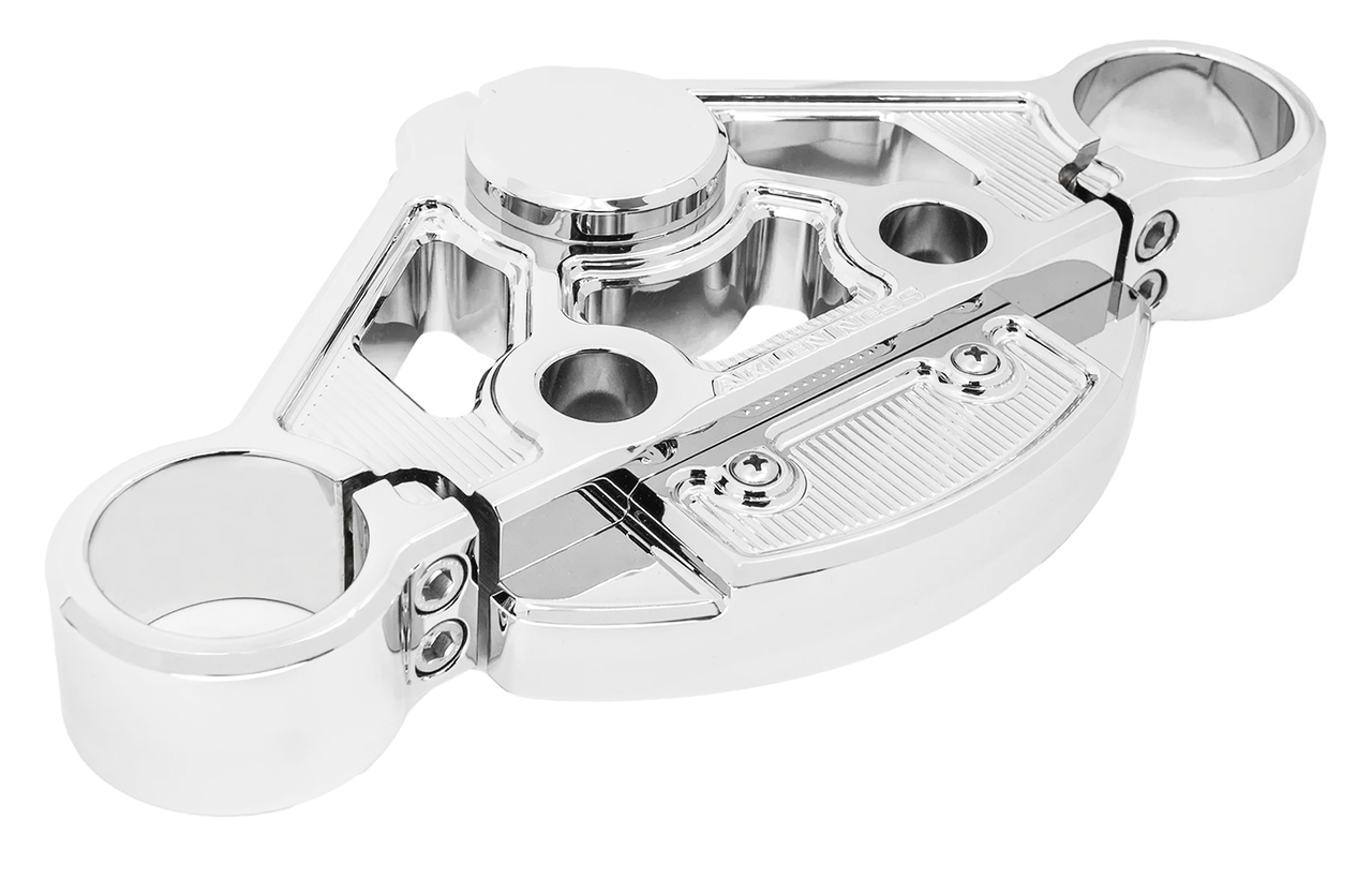 I kit di piastra superiore per forcella e le piastre complete Method consentono di aggiungere riser o manubri T-bar aftermarket. Sono dotate di un innovativo design del coperchio dell’interruttore di accensione che consente di decidere se mantenere la posizione dell’interruttore di serie o riposizionarlo per un look completamente personalizzato. Le staffe per forcella e i kit piastre Method rialzate aggiungono 2″ di altezza all’avantreno senza bisogno di tubi della forcella allungati. In questo modo si ottiene un’altezza aggiuntiva senza modificare la geometria della sospensione di fabbrica. Le piastre sono lavorate a CNC in alluminio billet per ottimizzare la resistenza e ridurre il peso. Lepiastre superiori funzionano con le staffe inferiori della forcella di serie. Utilizzate kit completi di piastre l’uso reale ad alte prestazioni e per le riparazioni in caso di incidente. Il coperchio opzionale dell’interruttore di accensione elimina drasticamente i tempi di installazione, in quanto consente di mantenere l’interruttore di accensione di serie e la funzione di bloccasterzo.