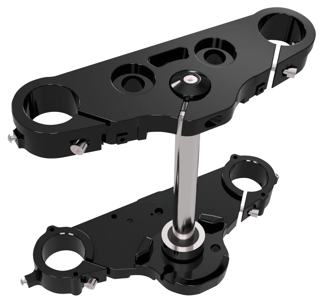 Per FLHC & FLHCS Heritage 2018 a oggi, FLDE Deluxe 2018-2020 FLDE e FLI Hydra-Glide Revival 2024 a oggi, Piastre forcella inclinate per uso con cerchio anteriore da 23″