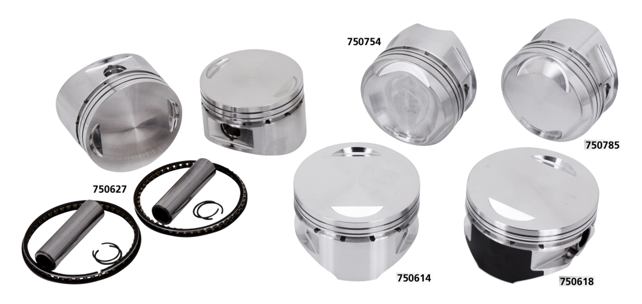 Kit pistoni S&S di ricambio per l’uso in motori S&S 96CI V2, 113CI Super SideWinder e 124CI Super SideWinder Plus, così come su molti kit Big Bore e Stroker S&S e aftermarket. Il kit contiene 2 pistoni, fasce, spinotto e clips. I set di fasce sono disponibili anche separatamente.
