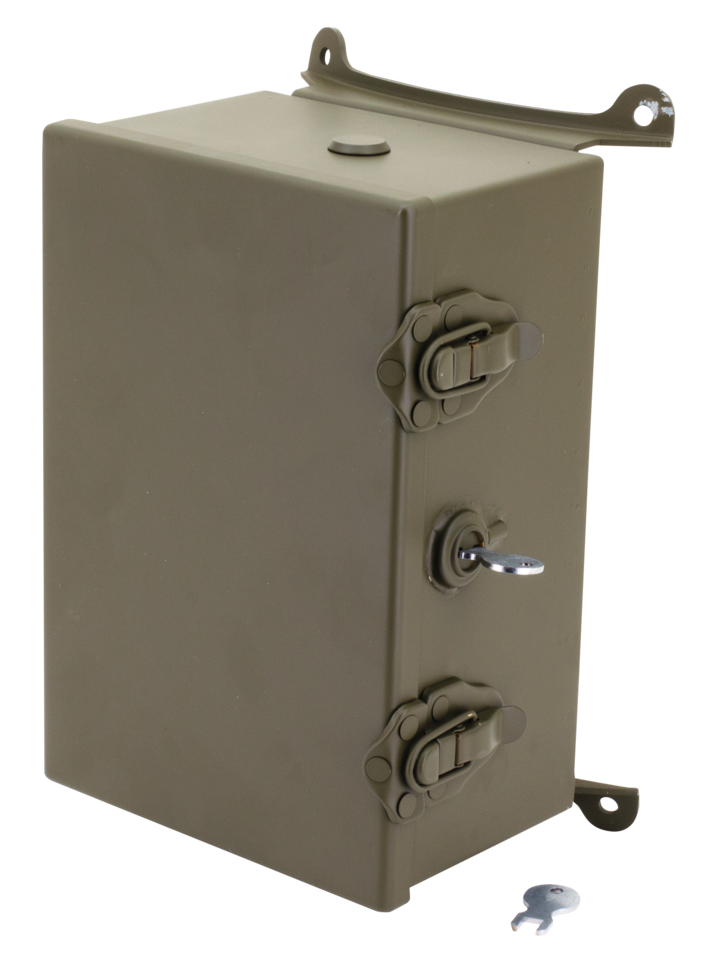 Fedele riproduzione della scatola degli attrezzi ausiliaria montata sul parafango anteriore dei modelli WLC 1942 45CI (Esercito Candadese).