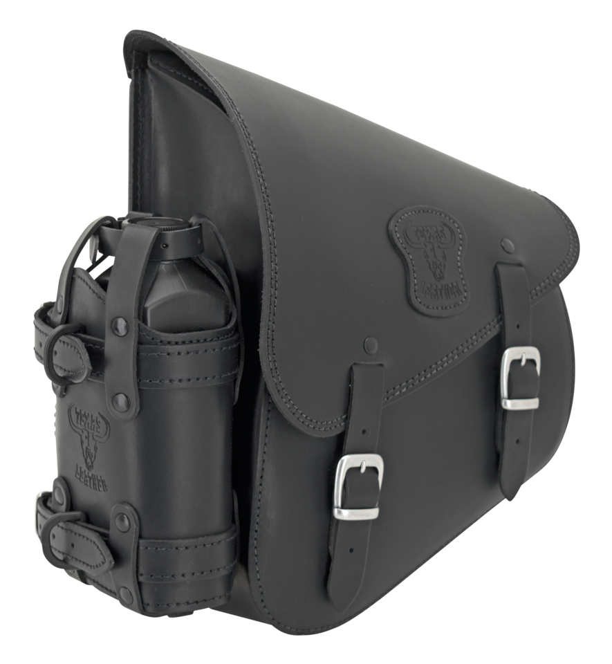 I portabottiglie dell’olio Texas Leather in vero cuoio sono un esclusiva di Zodiac e possono trasportare 1 bottiglia di olio Spectro da 1 quart o 1 litro o qualsiasi bottiglia d’olio con base di circa 4″x2 3/8″ (10x6cm). Si legano con la cinghia alla vostra moto o su qualsiasi borsa Texas Leather predisposta con cinghie.