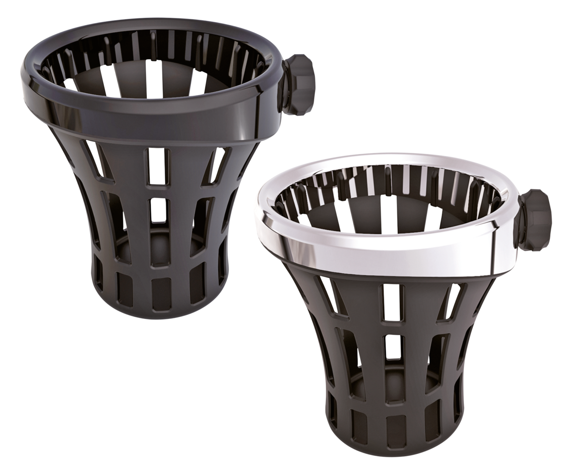 I porta tazza e porta bevande Ciro sono un modo di classe per avere qualcosa da bere a portata di mano. La tazza isolante in acciaio inox, mantiene le vostre bevande calde o fredde, mentre l’anello cromato con interno in neoprene la trattiene in sicurezza. Il portabibite manterrà la vostra bevanda al sicuro con la robusta rete in gomma. Entrambi i supporti hanno infinite possibilità di regolazione con l’attacco Ciro a sfera. Disponibile anche come supporto ‘Big Ass’ per contenitori fuori misura 30 Oz. (0,89 litri).