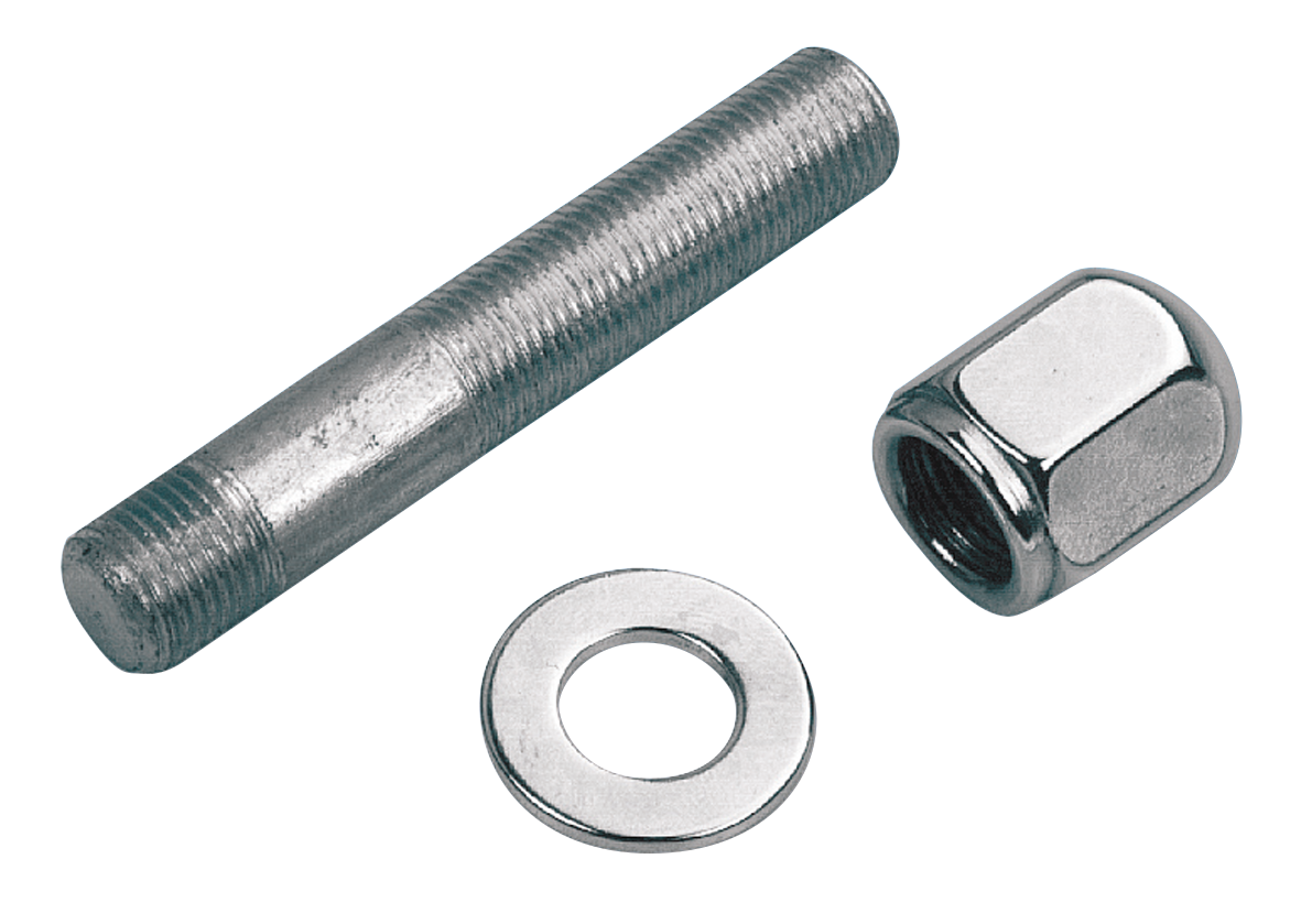 Questi speciali kit di prigionieri a doppia filettatura sono compatibili con FL Big Twin, tutti FX a 4 velocità, molti Sportster e molti Dyna dotati di serie di un bullone a testa esagonale OEM 3958 1/2-20×2 1/4″. Il prigioniero zincato 1/2-20 UNF è lungo 2 15/16″ (75mm), la rondella e il dado cieco sono cromati.