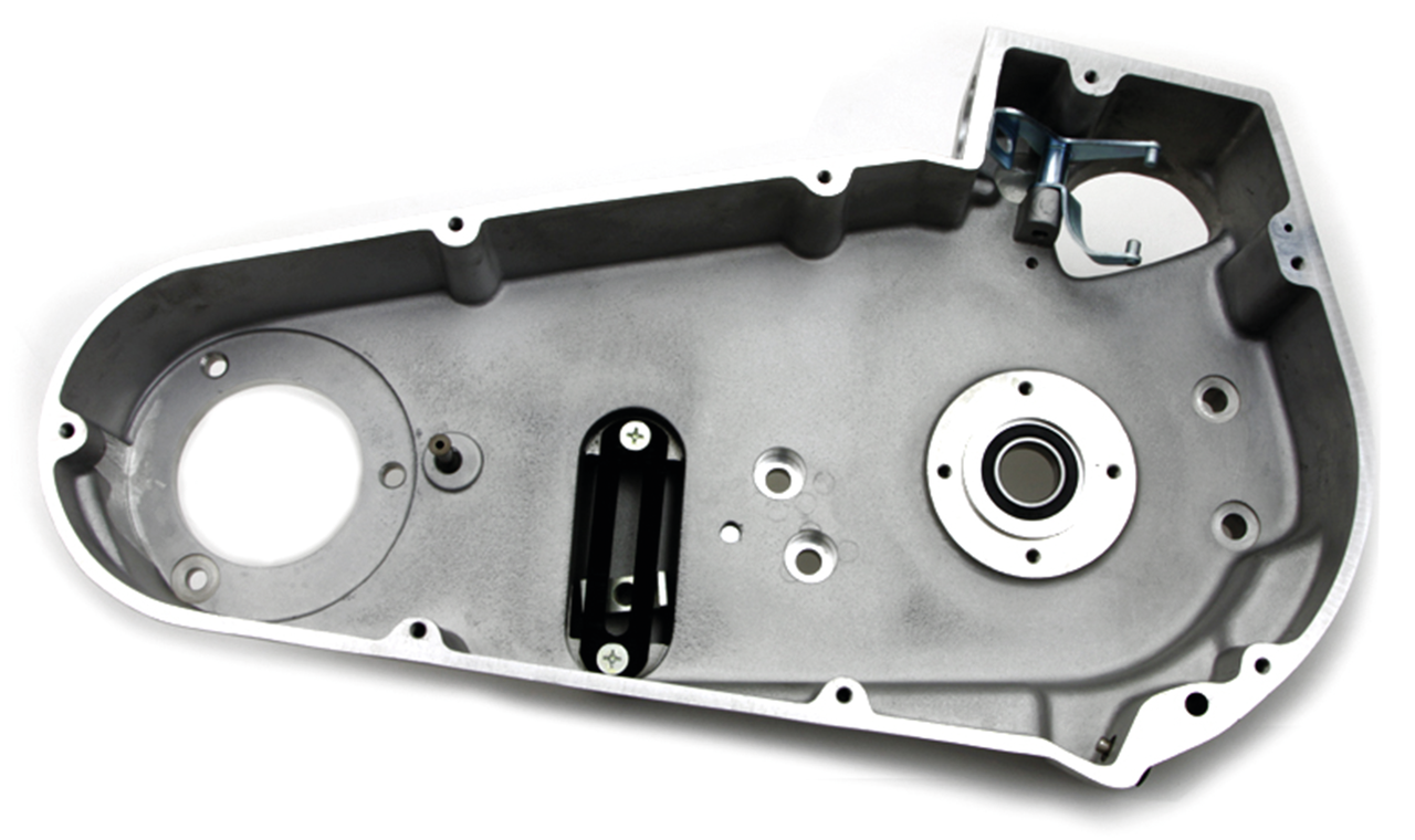 Replica della primaria interna con finitura in fusion di alluminio naturale che include il cuscinetto per l’albero principale del cambio e la piastra di ritenuta regolabile. La fusione è leggermente più grande dell’originale. L’installatore può fresare o lucidare il bordo dell’interno per un perfetto abbinamento.
