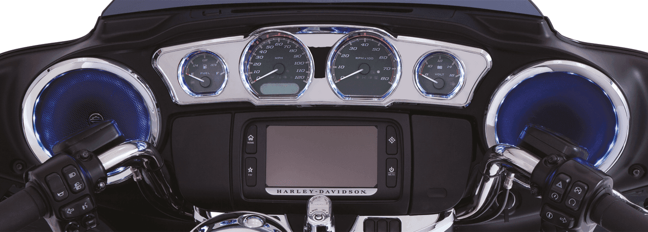 Questi profili altoparlanti cromati con LED multi-color vi daranno una gamma illimitata di combinazioni colore se usati con il kit Ciro Shock & Awe LED manuale o il controller Bluetooth. Tutti gli accessori Ciro per parabrezza possono essere cablati assieme per avere la stessa illuminazione. Se usati con il controller Bluetooth potete avere tutti gli accessori su un canale e i vostri LED su un altro, dandovi l’opportunità di avere milioni di combinazioni di colori, luminosità e funzioni. Per gli altoplarlanti di serie montati sul parabrezza dei Touring o Trike 2014-2023 (eccetto 2023 CVO). Non montano su altoparlanti per fairing Stage 2 Boom. Venduti in coppia.