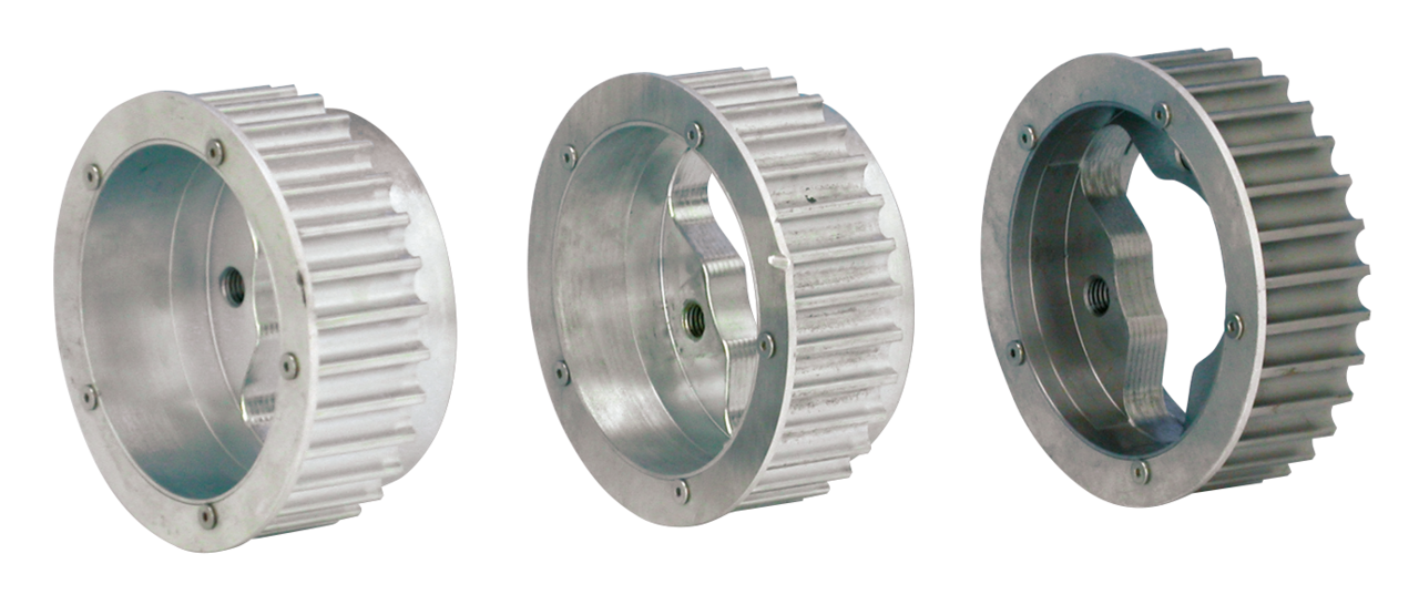 Queste pulegge anteriori disassate vanno usate quando montate un cerchio più largo di quello originale. Devono essere usate con tutte le parti necessarie al disassamento della ruota e della puleggia posteriore per allineare la cinghia. Disponibili nella versione a 30 denti con disassamento di 33, 42 o 55mm.