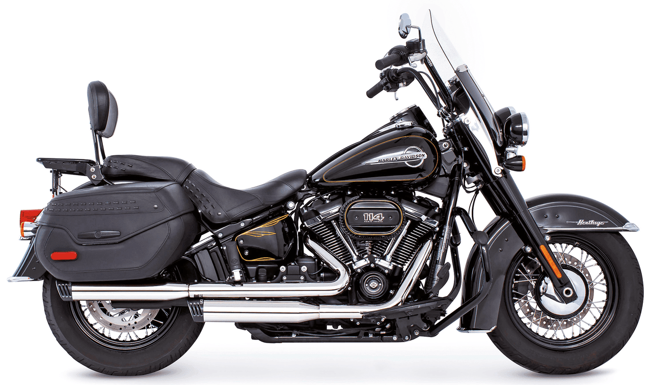 Softail FLDE Deluxe dal 2018 a oggiSoftail FLHC & FLHCS dal 2018 a oggiVersione race, Cromato con tappi finali scolpiti neri