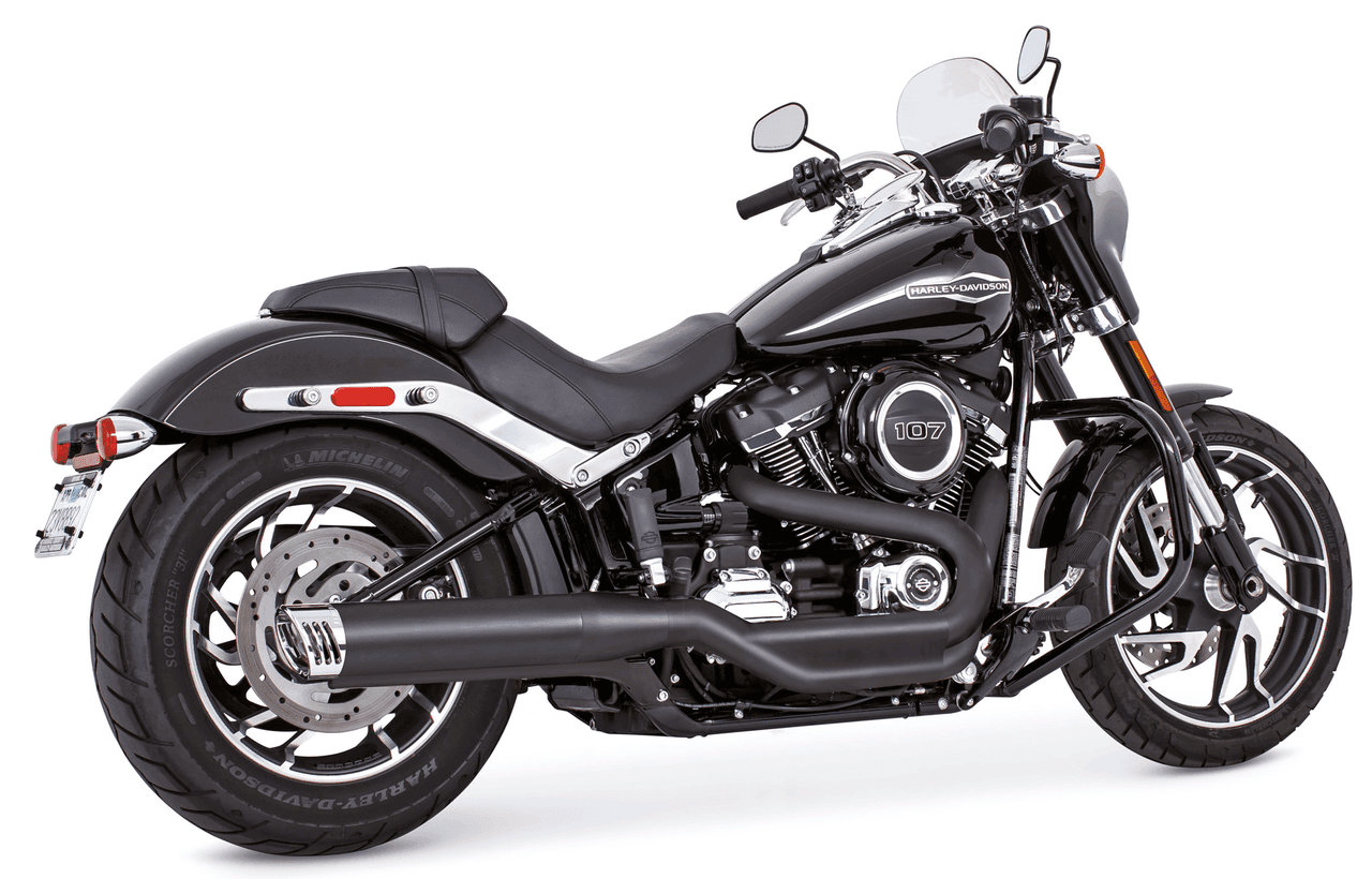 Softail FLSB Sport Glide dal 2018 a oggiSilenziatore singolo, diametro 4″Versione race, Nero con tappi finali cromati