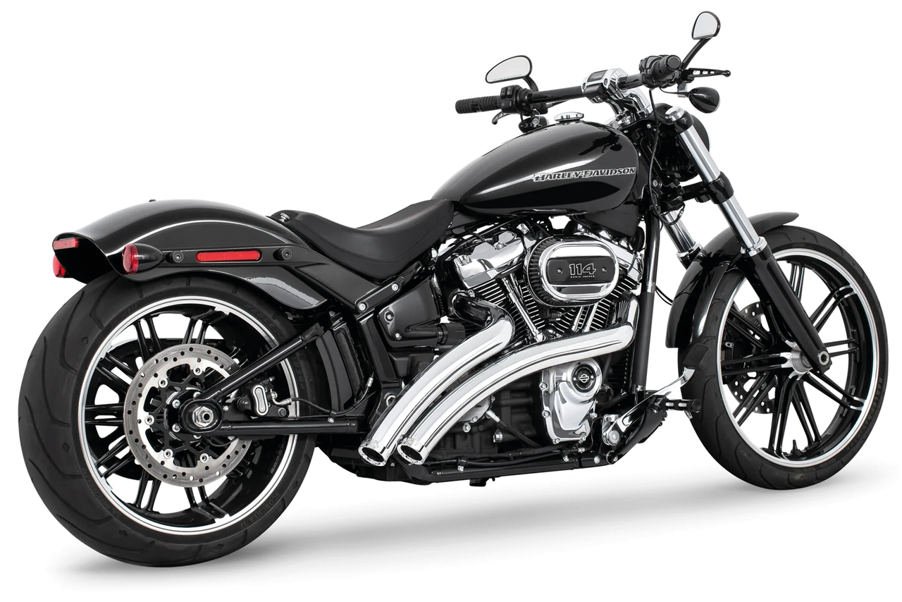 Per Softail dal 2018 a oggiRichiede adattatori quando installato su FLHC & FLHCS Heritage, FLI Hydra-Glide Revival, FLSB Sport Glide et FXLRST Low Rider ST con supporti borsePer il montaggio su FLFB e FLFBS Fat Boy, FXBR e FXBRS Breakout o FXDR(S), il kit di riposizionamento pedane passeggero deve essere ordinato separatamente Nota: Tutti i modelli Europei 2021 e successivi (Euro 5) richiedono l’eleiminatore per la sonda O2 posteriore ZPN 744444 e il tuning digitale con Diag4Bike o similari per disabilitare CEL (Check Engine Light) e DTC (Digital Trouble Code), Tutto cromato con tappi finali diritti Star
