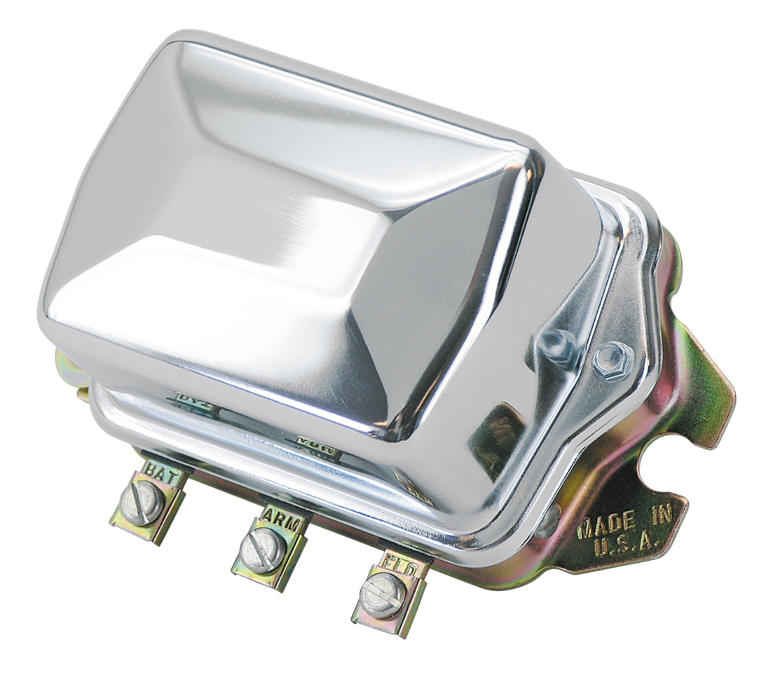 I famosi regolatori di tensione elettromeccanici Accel sono tarati in base alle esatte specifiche OEM e sono dotati di una base antiurto rinforzata, cablaggi interni a prova di vibrazione, di coperchietto stile OEM cromato, cuscinetti isolanti in fibra Mylar e superfici di contatto di grande diametro. Per FL/FLH 12 Volt dal 1965 al 1969 e XLH dal 1965 al 1978 (OEM 74510-64).