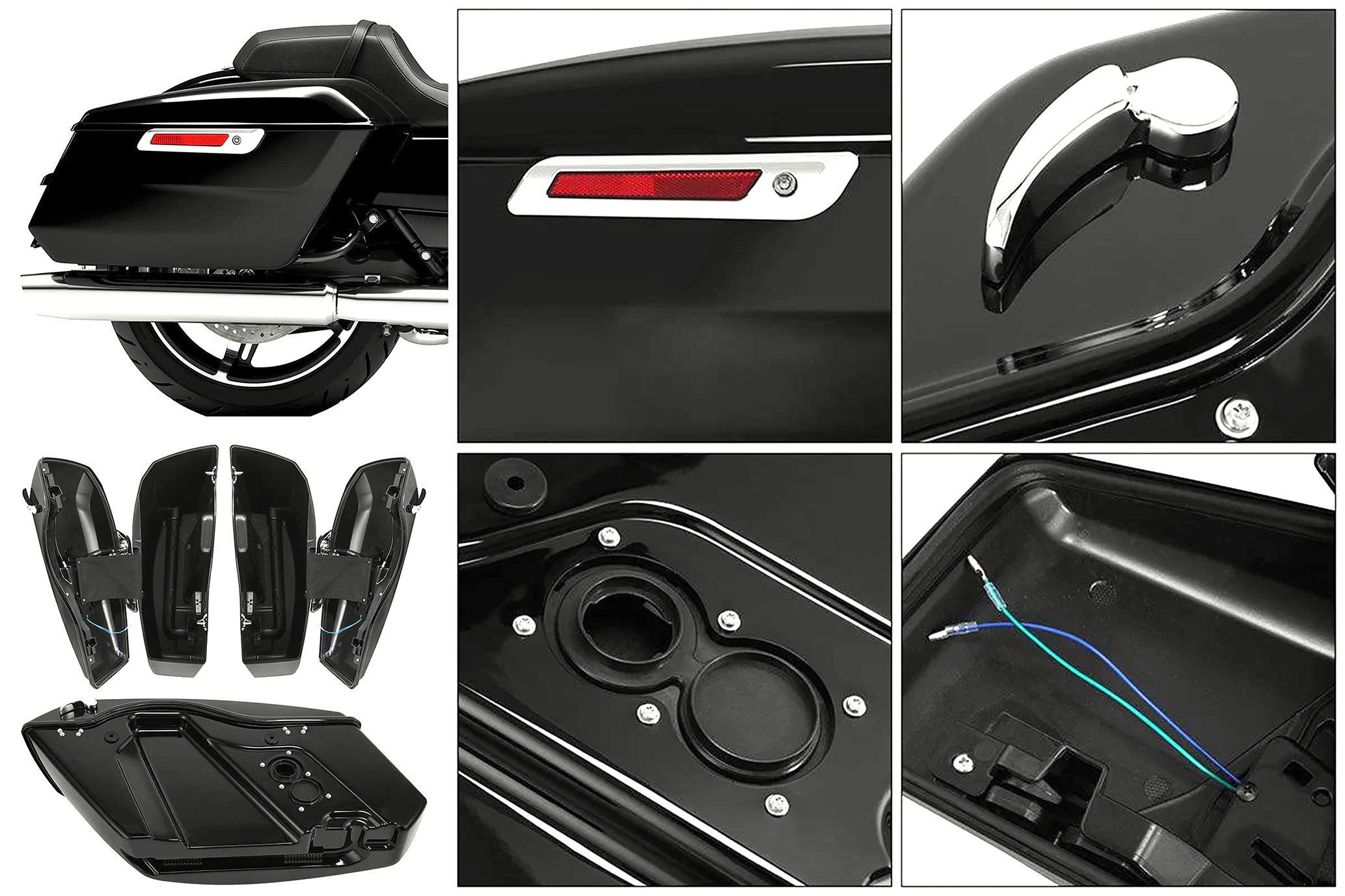 Replica in ABS di borse e coperchi dei Touring CVO 2023 a oggi e Touring 2024 a oggi. Possono essere usate di ricambio agli originali in caso di rotture. Borse e coperchi sono verniciati in nero lucido.