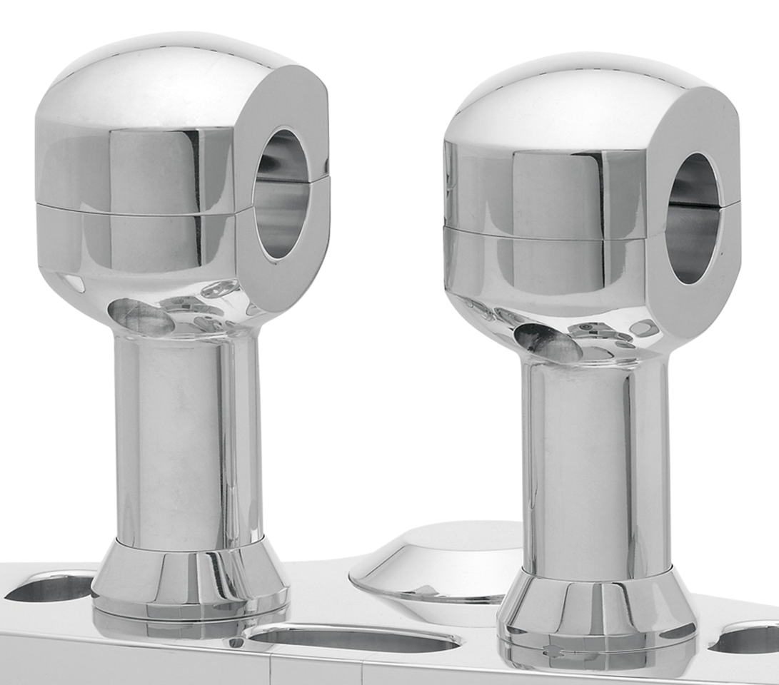 Riser in alluminio billet con morsetto superiore a montaggio nascosto. Progettati da Müller Motorcycle, prodotti da Fehling. Installare con bulloni riser 1/2″-13 UNC.
