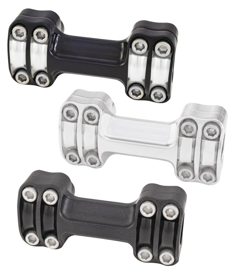 Lo sforzo prodotto guidando con alti Ape Hangers causa uno stress maggiore a manubrio e riser. Per evitare tutto ciò, Roland Sand ha sviluppato questi riser in un pezzo unico. I riser sono alti 1 1/2″ (3.8 cm) e accettano manubri di serie o aftermarket da 1″ . Per tutti i modelli con piastre per riser con interasse di 3 1/2″ (89mm). Bulloni di montaggio non inclusi, usare con bulloni da 1/2″-13 ZPN233383.
