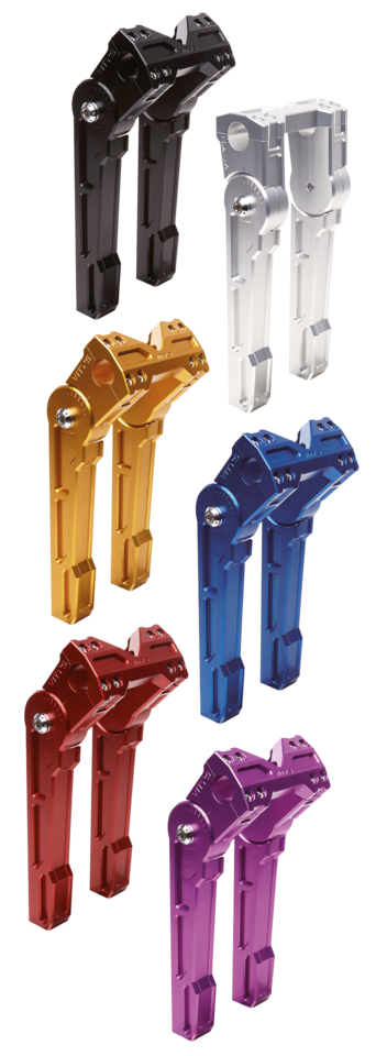 Riser alti in alluminio billet da 10 pollici (25,4cm) lavorati con precisione con testa regolabile e morsetto superiore monoblocco per l’uso con manubri di diametro 1″ sui supporti del riser. Viene fornito completo di bulloni riser M12-1,5x70mm.
