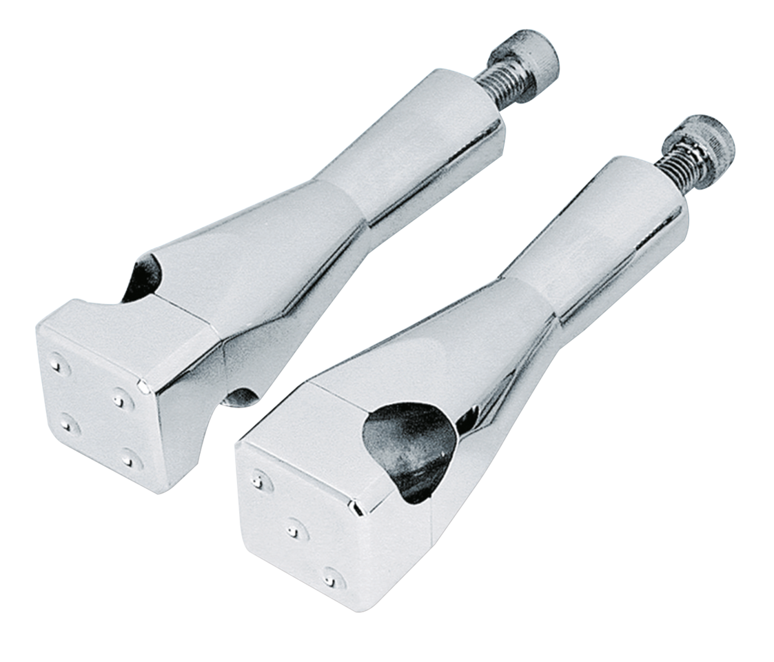 I dadi sono tornati! Questi riser Lucky Seven sono disegnati con gusto e danno quel look custom distintivo. Sono lavorati dal pieno ed hanno una finitura lucidata. Per un look più slanciato, la piastra manubrio superiore ha la bulloneria per il montaggio nascosta.