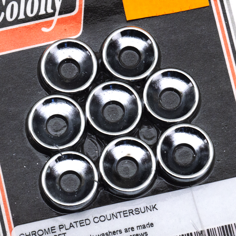 Queste rondelle cromate e svasate a 82 gradi sono costruite per accettare viti a brugola con testa piatta per una varietà di applicazioni custom. Disponibili nelle misure #10 a 7/16″ in confezioni di quantità differenti.