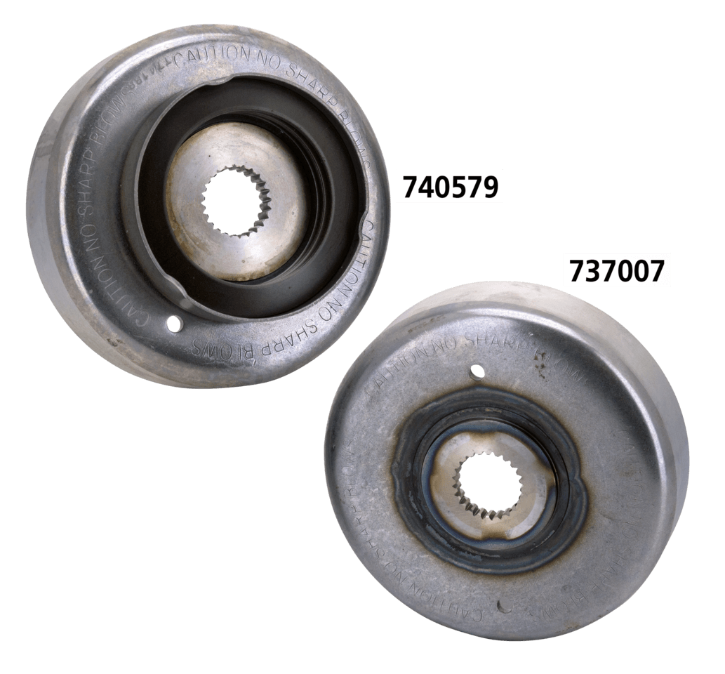 Per Dyna 2007-2011, Touring 2007-2010 e Softail 2007-2011 eccetto Rocker e Rocker C 2008-2011. Non adatto a modelli equipaggiati con pignone compensatore Screamin’ Eagle o aggiornati al nuovo pignone compensatore di serie., Rotore alternatore con coppa molla compensatore, USA (OEM 40356-07)