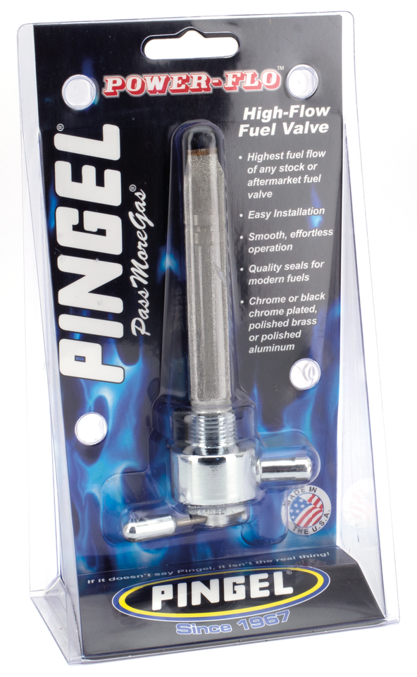 Questi rubinetti “Designer” sono costruiti in solido bronzo con precise specifiche e tolleranze ristrette. Il corpo è finemente lucidato e quindi cromato ed è disponibile nella versione liscia o lavorato. I rubinetti Pingel sono il must per il customizzatore che ha attenzione per i dettagli. Sono disponibili lisci, scanalati o con lampi, con disegno fiammato o sfaccettato. L’interno di questi rubinetti ad alto flusso ha le stesse caratteristiche dei rubinetti Pingel Power-Flo. Il design unico ottimizza il flusso di carburante sia a serbatoio pieno che in riserva. I rubinetti sono disponibili per tutti modelli di serbatoio recenti e del tipo vecchio per Big Twin e Sportster. I rubinetti con filettatura metrica da 22mm sono adatti per tutti Big Twin e Sportster 1975-2005. Il rubinetto con filettatura 1/4″ NPT è adatto per serbatoi pre-1975 e per la maggior parte di quelli custom. Tutti i rubinetti sono disponibili con uscita in avanti, indietro ed in giù.