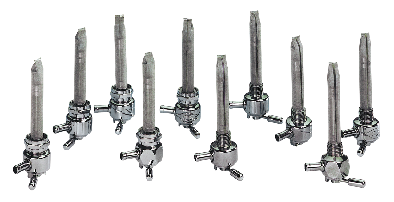 Questi rubinetti “Designer” sono costruiti in solido bronzo con precise specifiche e tolleranze ristrette. Il corpo è finemente lucidato e quindi cromato ed è disponibile nella versione liscia o lavorato. I rubinetti Pingel sono il must per il customizzatore che ha attenzione per i dettagli. Sono disponibili lisci, scanalati o con lampi, con disegno fiammato o sfaccettato. L’interno di questi rubinetti ad alto flusso ha le stesse caratteristiche dei rubinetti Pingel Power-Flo. Il design unico ottimizza il flusso di carburante sia a serbatoio pieno che in riserva. I rubinetti sono disponibili per tutti modelli di serbatoio recenti e del tipo vecchio per Big Twin e Sportster. I rubinetti con filettatura metrica da 22mm sono adatti per tutti Big Twin e Sportster 1975-2005. Il rubinetto con filettatura 1/4″ NPT è adatto per serbatoi pre-1975 e per la maggior parte di quelli custom. Tutti i rubinetti sono disponibili con uscita in avanti, indietro ed in giù.