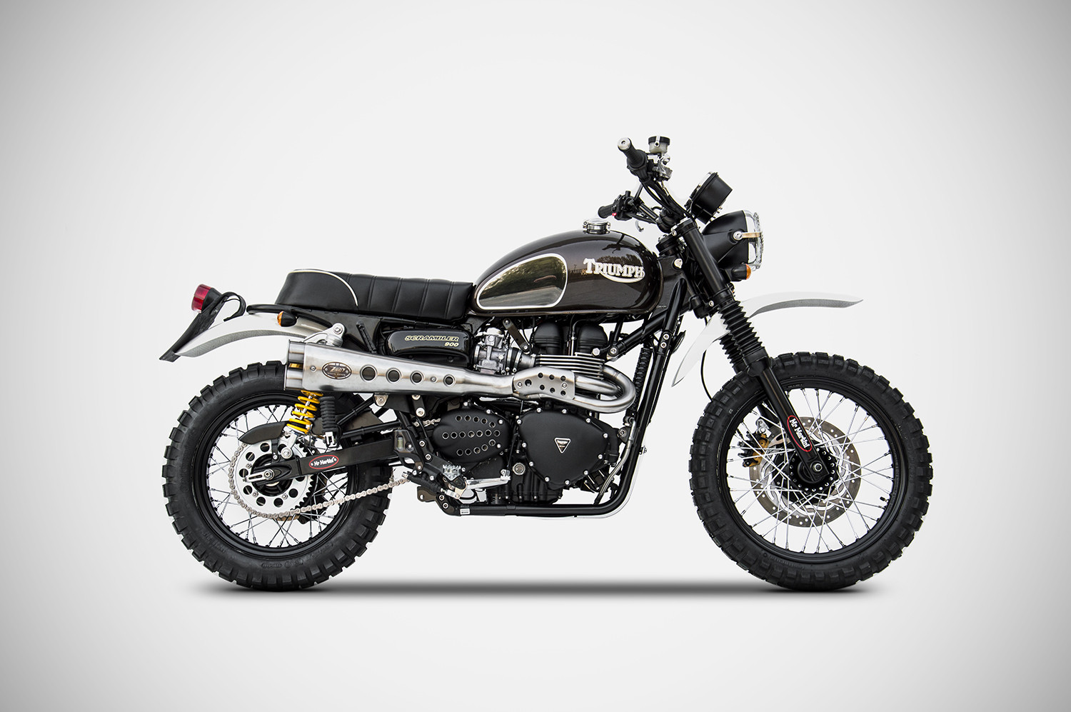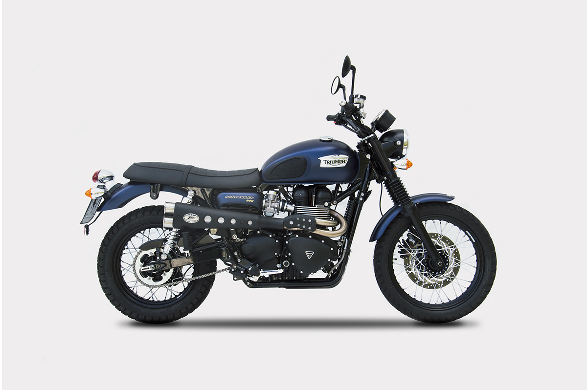 Il Full kit “Special” alto per la Triumph Scrambler 900, completamente realizzato a mano in Italia, è composto da collettore e silenziatore in acciaio inox AISI 304, con fodero e fondello in acciaio inox. È disponibile in finitura satinata, nera Cerakote® o con paracalore in contrasto di colore nero. Il kit contribuisce a migliorare le performance della moto con un notevole incremento di potenza, una sensibile riduzione di peso di -6,7 kg, portandolo a soli 4,9 kg, e un sound profondo e distintivo. Il design ad alto impatto visivo valorizza le linee classiche della moto. Prodotto disponibile in versione omologato Euro 3 o racing. NOTA: il paracalore ha in dotazione sia la retina nera che quella silver. Versione racing compatibile con Triumph Scrambler 900 (2001–2016)