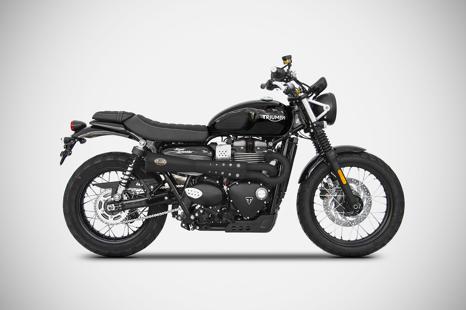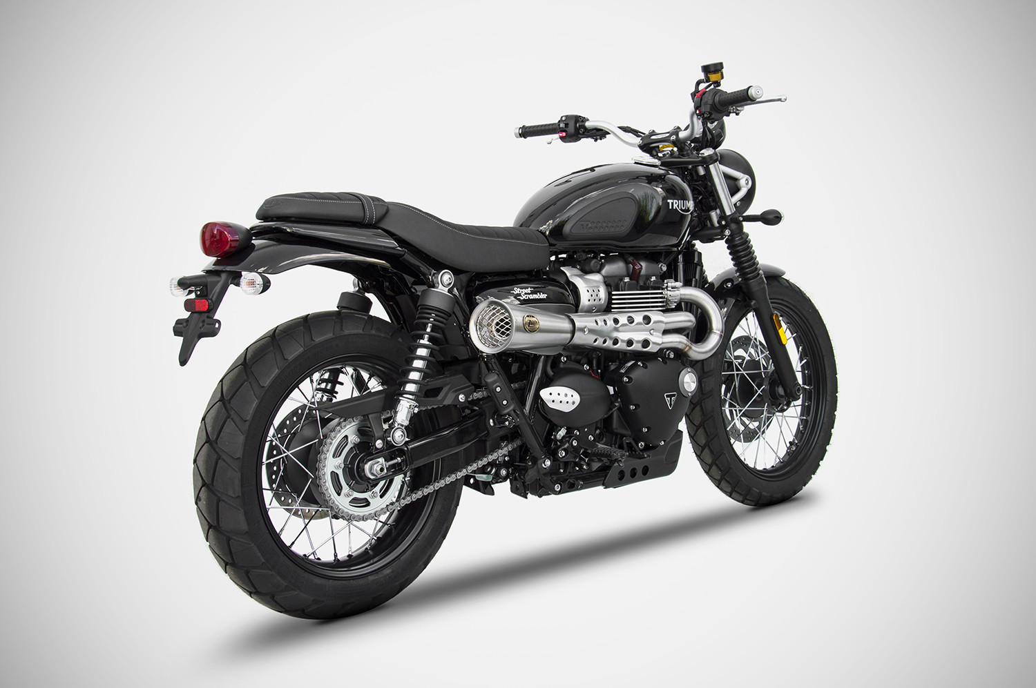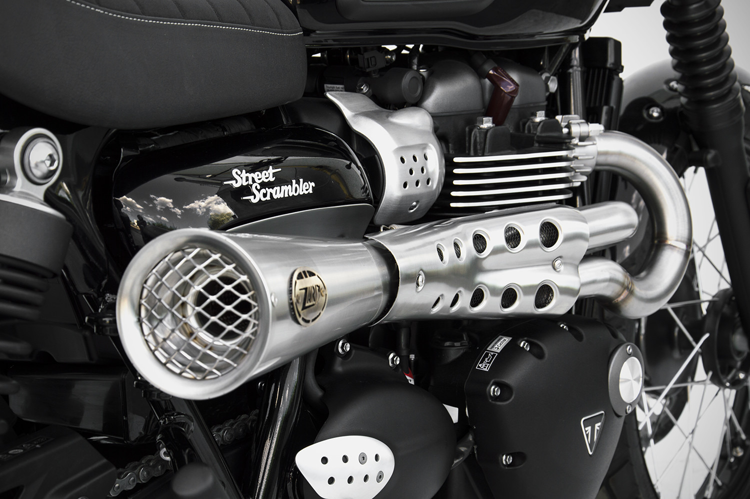 Il Full Kit “Tiger 70” per la Triumph Scrambler 900, interamente realizzato a mano in Italia, il sistema è composto da collettore e silenziatore in acciaio inox AISI 304, con fodero e fondello in acciaio inox. È disponibile in finitura satinata o nera Cerakote® con possibilità di aggiungere il fondello bronzato. L’intero sistema si distingue per il notevole aumento di potenza, riduzione di peso e un sound profondo che amplifica l’identità scrambler della moto. Il layout 2>1 dona alla moto un look slanciato e muscoloso. Il peso complessivo del kit Zard è di soli 3,7 kg, riducendo di -6,1 kg rispetto allo scarico originale, contribuendo a una significativa riduzione del peso complessivo della moto. Il prodotto non è omologato per uso stradale. Il design si integra perfettamente con le linee classiche della moto. Prodotto non omologato per uso stradale. Compatibile con Triumph Street Scrambler 900 (2017–2023)