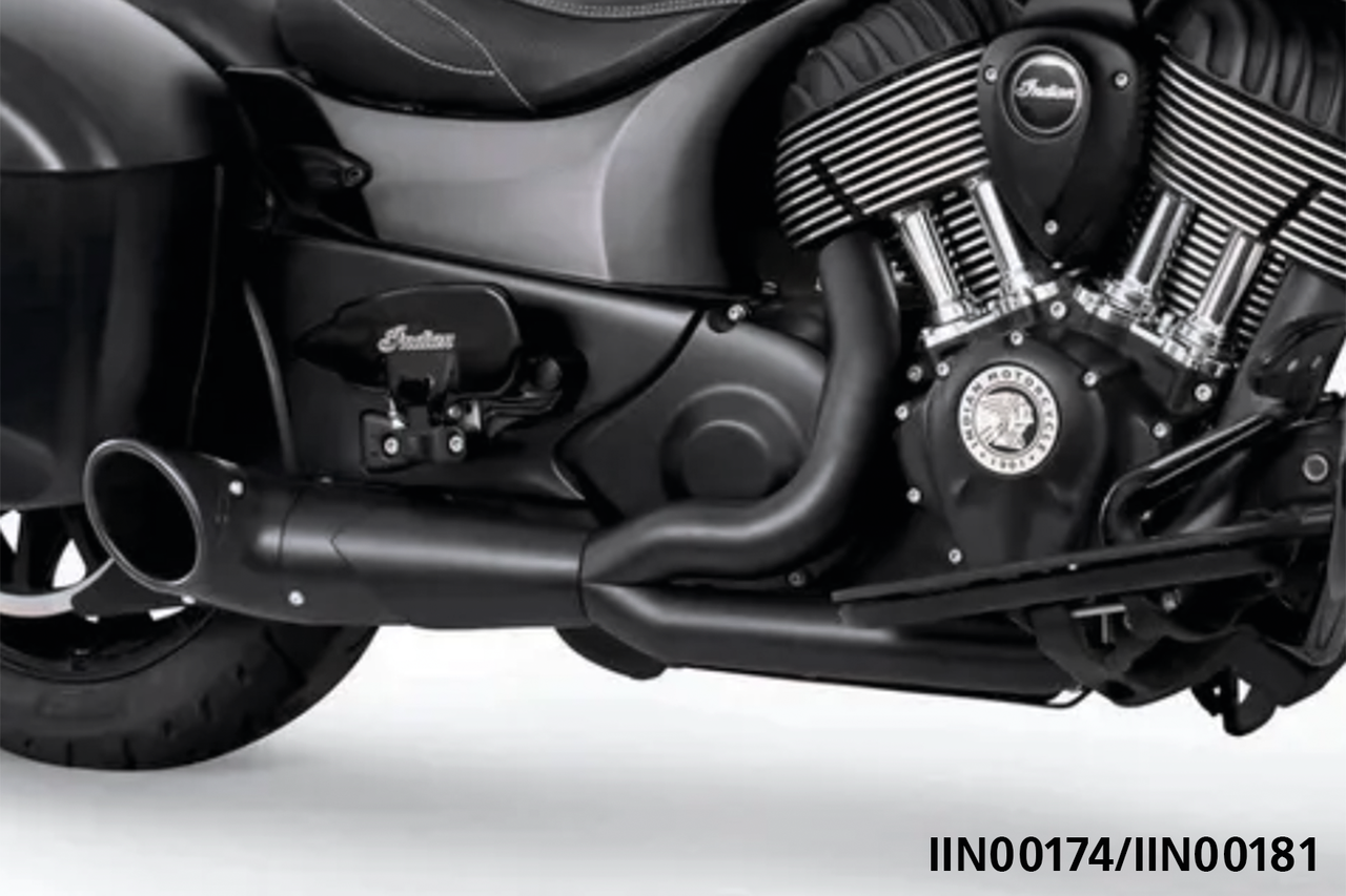 Per 2014-2021 Indian Chief, Chief Classic, Chief Dark Horse, Chief Standard & Chief Vintage, Turn-Out 2-int-1 nero con tappo finale Slash Cut nero liscio