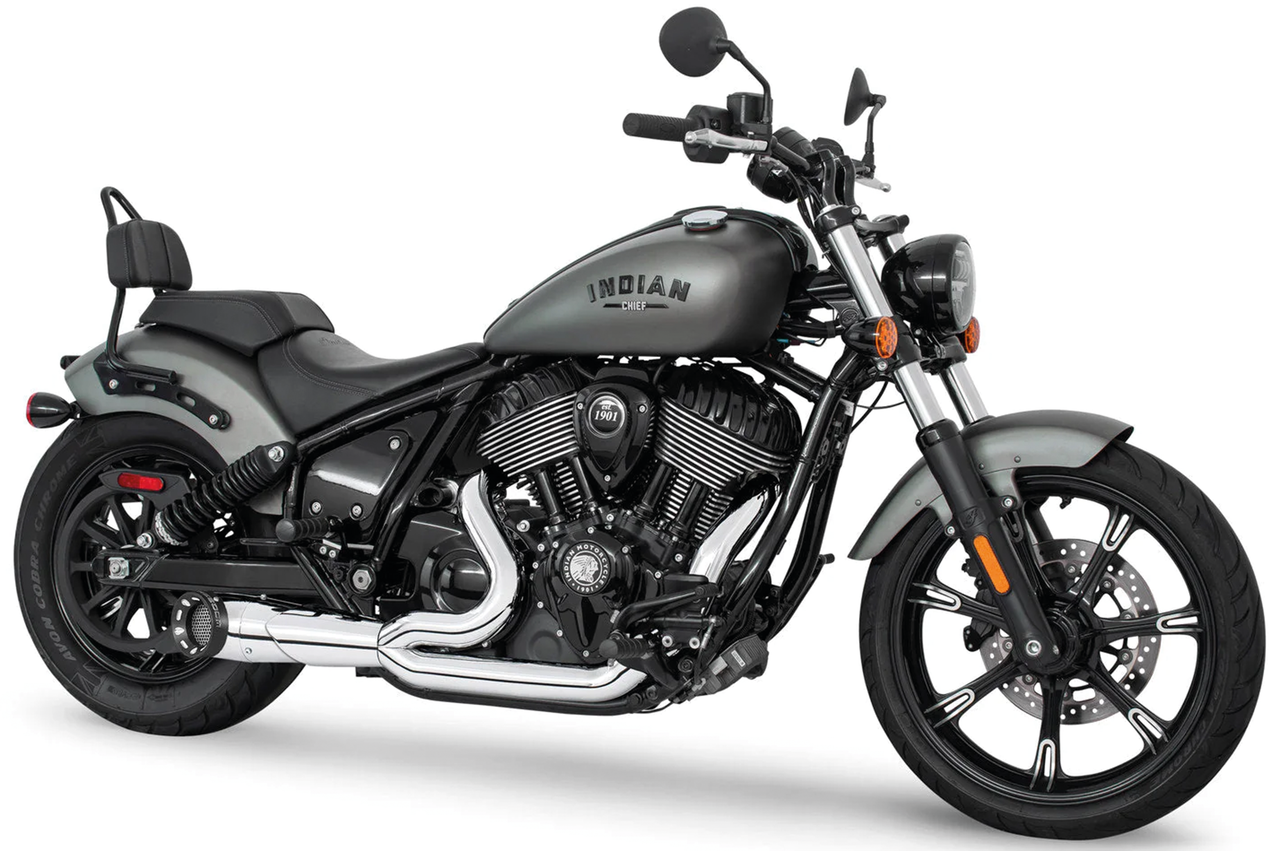 Per 2022 a oggi Indian Chief Bobber, Chief Classic, Chief Dark Horse, Chief Standard, Chief Vintage & Super Chief, Turn-Out 2-int-1 cromato con tappo finale Straight Cut nero liscio