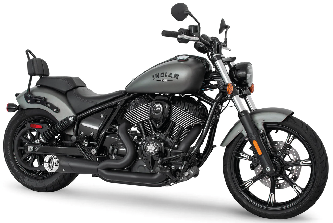 Per 2022 a oggi Indian Chief Bobber, Chief Classic, Chief Dark Horse, Chief Standard, Chief Vintage & Super Chief, Turn-Out 2-int-1 nero con tappo finale Straight Cut cromato
