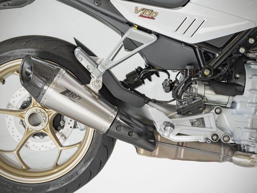 Il silenziatore Zard per la Moto Guzzi® V100 Mandello, progettato per esaltare il carattere sportivo della moto, è interamente realizzato a mano in Italia con materiali di altissima qualità. La struttura in acciaio inossidabile assicura resistenza e durata, mentre il fodero in titanio e il fondello in fibra di carbonio garantiscono leggerezza e un’estetica aggressiva. Disponibile nelle versioni Racing o Omologata Euro 5, lo slip-on racing offre un incremento di prestazioni di +1,6 CV nella versione racing e +0.9 CV in quella omologata E5. e un suono profondo e coinvolgente, per un’esperienza di guida ancora più emozionante. Grazie all’utilizzo di materiali avanzati, si può beneficiare di una riduzione di peso di -1.4 kg rispetto allo scarico originale nella versione racing e -1.3 kg in quella omologata, migliorando agilità e maneggevolezza. Nota: Lo slip-on per il V100 Mandello è compatibile con il set valigie originali Moto Guzzi®.