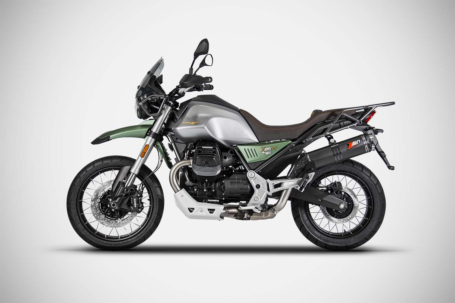 Lo Slip-On di Zard per la Moto Guzzi V85 TT è artigianalmente realizzato in Italia, con grande attenzione ai dettagli e alle prestazioni. La struttura è in acciaio inox AISI 304 con fodero a scelta in acciaio inox o in titanio come optional, il fondello è in fibra di carbonio, e la finitura può essere satinata o nera. Completa il kit il paracalore in fibra di carbonio. Disponibile in versione racing o omologata Euro 5, dona alla V85 TT un sound ricco e avvolgente, senza compromessi. L’installazione è plug‑&‑play e non richiede alcuna modifica. Il peso dello slip-on è di 2,8 kg nella versione in titanio, mentre per la versione in acciaio inox pesa 3,2 kg, offrendo un significativo risparmio di peso di −2,5 kg e −2,1 kg nelle rispettive versioni, ottimizzando agilità e risposta all’acceleratore. Il sistema di scarico Zard è compatibile con il montaggio delle borse laterali rigide di serie e il cavalletto centrale, non richiede la rimappatura della centralina è facile da installare ed è pronto all’uso. Prodotto non compatibile con i modelli Euro 5+
