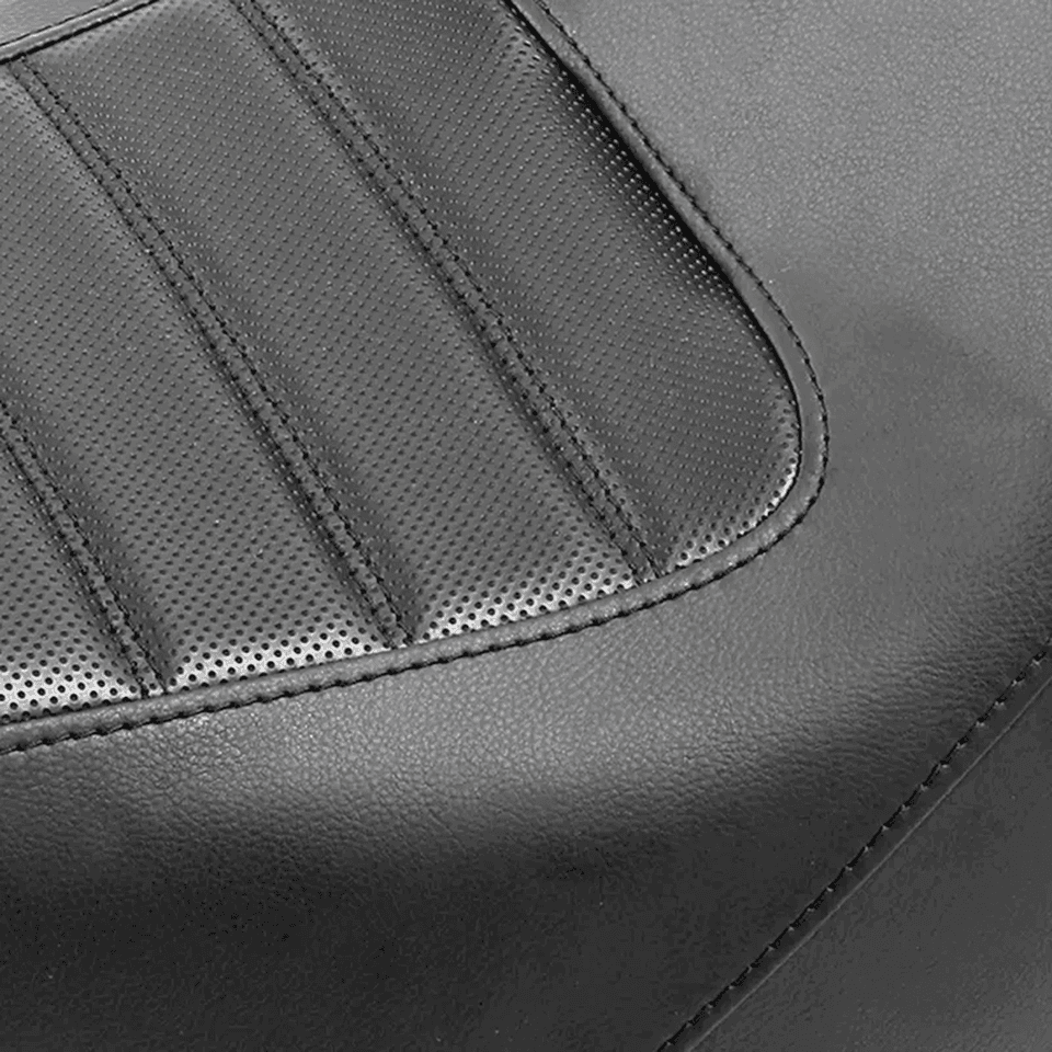 Questo sedile per conducente e passeggero è dotato di schiuma ad alta resilienza che offre il massimo comfort. Il rivestimento è realizzato in pelle artificiale in microfibra, per garantire durata e traspirabilità. La parte anteriore del sedile aiuta il pilota a mantenere la posizione durante la guida, garantendo un’esperienza di guida confortevole. Il design a posizione bassa riduce l’altezza della sella e consente al pilota di spostarsi dai comandi a mano e a pedale senza sedersi più in alto sulla moto.