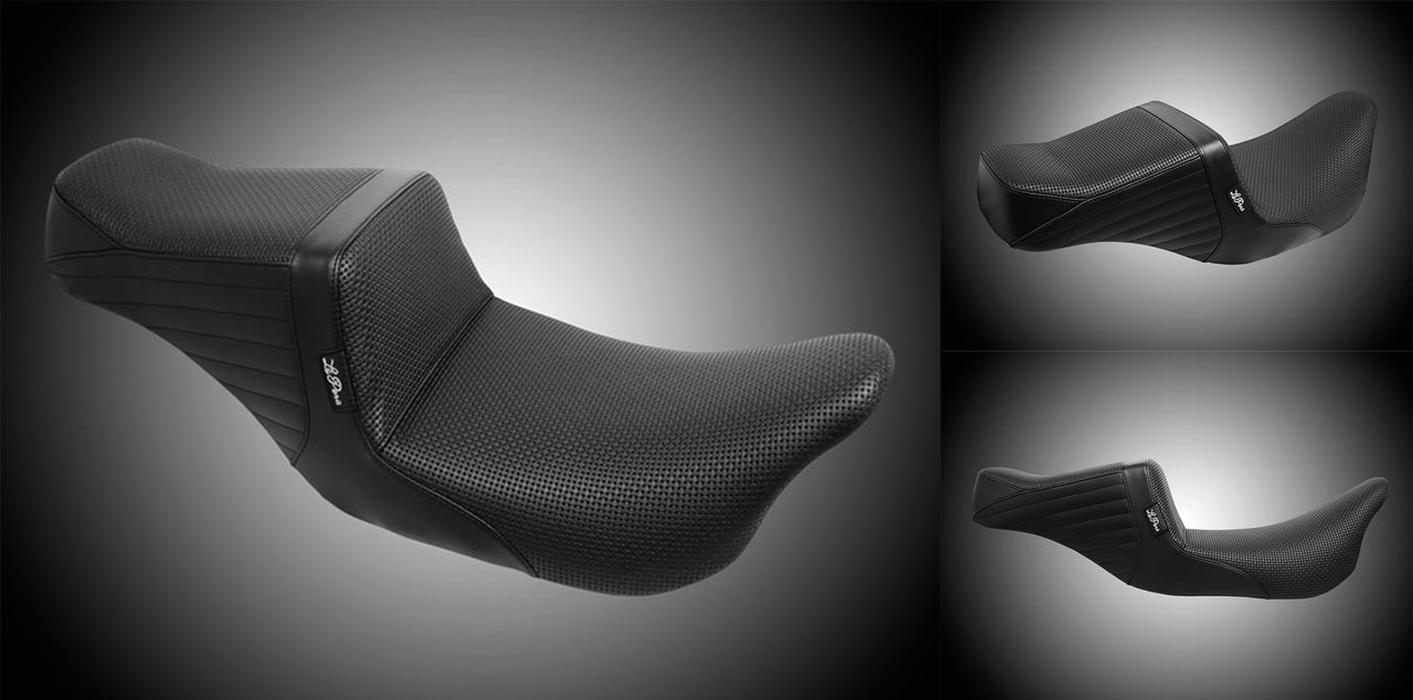 Questa è la versione 2-up della sella Kickflip di Le Pera. Che sia più comodo per il passeggero o semplicemente un’altra piattaforma per far esplorare il vostro lato avventuroso, la coda montata vi darà quello che state cercando. I sedili standard e Daddy Long Legs offrono al conducente un’area di seduta larga 32cm (12 1/2″) e al passeggero 19cm (7 1/2″). La versione Daddy Long Legs (Gambe lunghe) pone il conducente 2″ (5cm) più indietro nel sedile. La versione Up Front offre al conducente un’area di seduta larga 30 cm (11 3/4″).