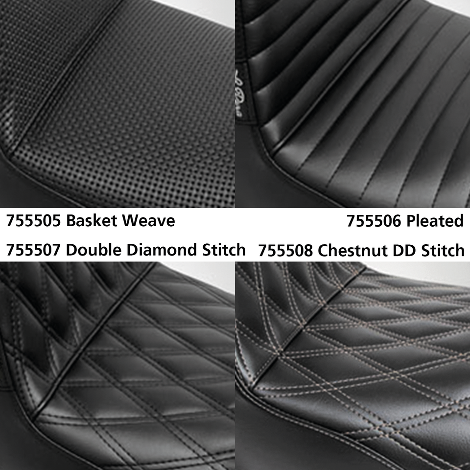 Questa è la versione 2-up della sella Kickflip di Le Pera. Che sia più comodo per il passeggero o semplicemente un’altra piattaforma per far esplorare il vostro lato avventuroso, la coda montata vi darà quello che state cercando. I sedili standard e Daddy Long Legs offrono al conducente un’area di seduta larga 32cm (12 1/2″) e al passeggero 19cm (7 1/2″). La versione Daddy Long Legs (Gambe lunghe) pone il conducente 2″ (5cm) più indietro nel sedile. La versione Up Front offre al conducente un’area di seduta larga 30 cm (11 3/4″).