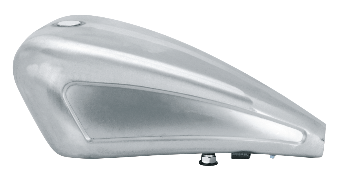 Questi serbatoi con incavi si abbinano perfettamente alle linee fluenti dei nostri telai High Neck Chopper. Disponibili per telai con allungamento sui tubi inferiori di 4″ o 6″ e minimo 3″ pollici di allungamento sul trave centrale, mentre il tunnel monta su tubi fino a 2″ di diametro. I serbatoi sono forniti con staffe di montaggio da saldare, che saranno posizionate sul fondo in modo da rimanere nascoste. I serbatoi sono filettati 1/8 -27 NPT sul retro per le linee benzina e devono usare rubinetti da 13/16″ (22mm).