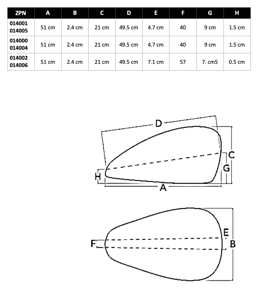 Versione ristretta e affusolata dei nostri popolari serbatoi Legacy. Sono larghi 9″ (23cm) davanti e solo 3 1/2″ (9cm) dietro e contengono circa 2.75 Galloni US (10.4 litri). Accettano il tappo a vite di serie e sono disponibili separatamente due fianchetti in gomma per le ginocchia.
