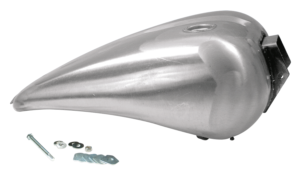 Questo serbatoio dona al tuo FXR quella linea fluente e scivolosa trovabile nei nostri serbatoi allungati. La parte allungata non è saldata al serbatoio ma integrata alla costruzione ed ha un particolare disegno per incontrare perfettamente molte selle strette. La capacità del serbatoio è di circa 4.2 galloni (15,9L.) ed è disponibile con tappo doppio o singolo a vite, con tappo doppio o singolo stile Quick Cam incassato, con tappo stile aeronautico e con i nuovi tappi pop-up nella versione verniciabile o cromata.