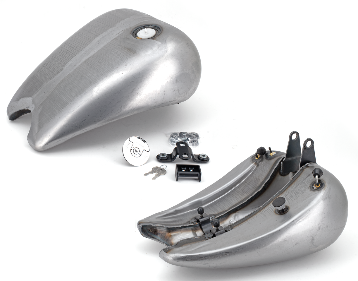 Questo serbatoio in pezzo unico darà al tuo Softail quel look allungato e fluido amato dai migliori customizzatori. La parte allungata non é un pezzo saldato, ma parte integrante del serbatoio. Il serbatoio d’acciaio allungato di Zodiac é l’unico costruito in un pezzo unico. Il suo disegno darà alla tua moto una linea pulita e fluente ed un look molto di classe. Disponibile con uno o due tappi a vite o “Quick Lock” con serratura, con tappo singolo stile aeronautico e con l’ultimo tipo di tappi pop-up nella versione verniciabile o cromata. Dato il disegno snello, deve essere montata una sella stretta (come le nostre selle Silhouette), non può essere usato con la sella originale. Monta su modelli Softail dal 1984 al 1999. Il serbatoio tiene circa 4.2 galloni di carburante (15,9L.).
