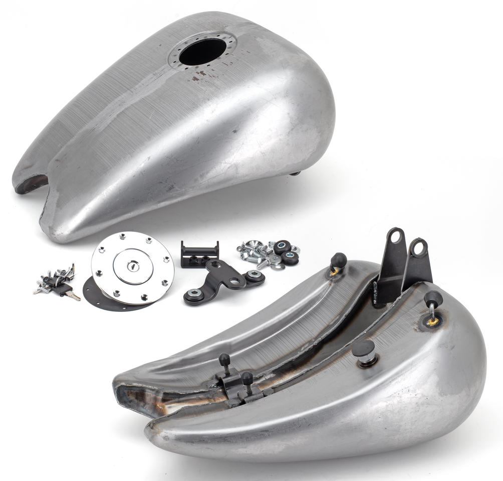 Questo serbatoio in pezzo unico darà al tuo Softail quel look allungato e fluido amato dai migliori customizzatori. La parte allungata non é un pezzo saldato, ma parte integrante del serbatoio. Il serbatoio d’acciaio allungato di Zodiac é l’unico costruito in un pezzo unico. Il suo disegno darà alla tua moto una linea pulita e fluente ed un look molto di classe. Disponibile con uno o due tappi a vite o “Quick Lock” con serratura, con tappo singolo stile aeronautico e con l’ultimo tipo di tappi pop-up nella versione verniciabile o cromata. Dato il disegno snello, deve essere montata una sella stretta (come le nostre selle Silhouette), non può essere usato con la sella originale. Monta su modelli Softail dal 1984 al 1999. Il serbatoio tiene circa 4.2 galloni di carburante (15,9L.).