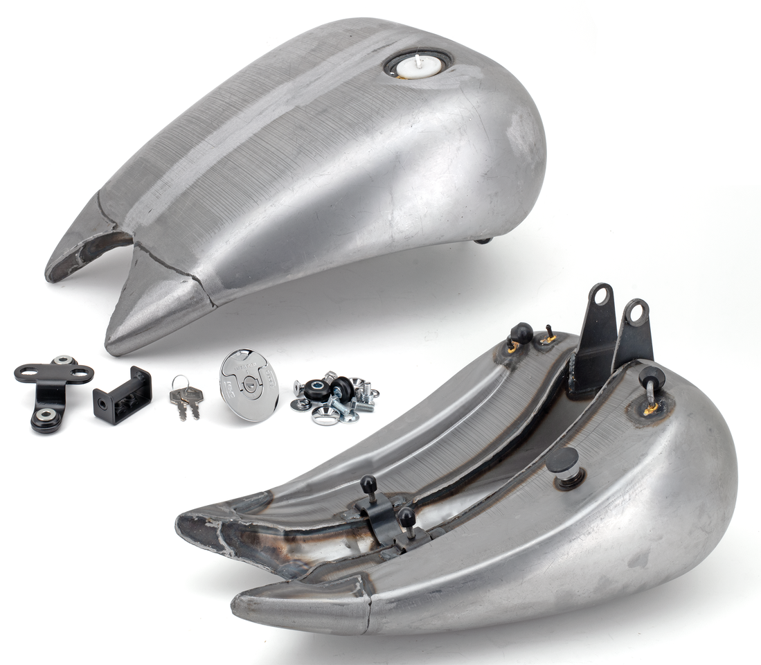 Questo serbatoio allungato in pezzo unico dona al tuo Softail quella linea morbida e fluente associata ai migliori costruttori di moto custom. Questi serbatoi sono costruiti saldando un’estensione di 2″ ai nostri serbatoi allungati, risultando così allungati di 4 pollici totali (10 cm) rispetto all’originale. L’allungamento extra dona un aspetto più sottile. La parte posteriore del serbatoio è tagliata per incontrare molte selle strette e le nostre Silhouette. Per modelli Softail dal 1984 al 1999. I serbatoi sono disponibili con quattro tipi di tappi differenti e contengono circa 4.2 galloni di benzina (15,9L.).